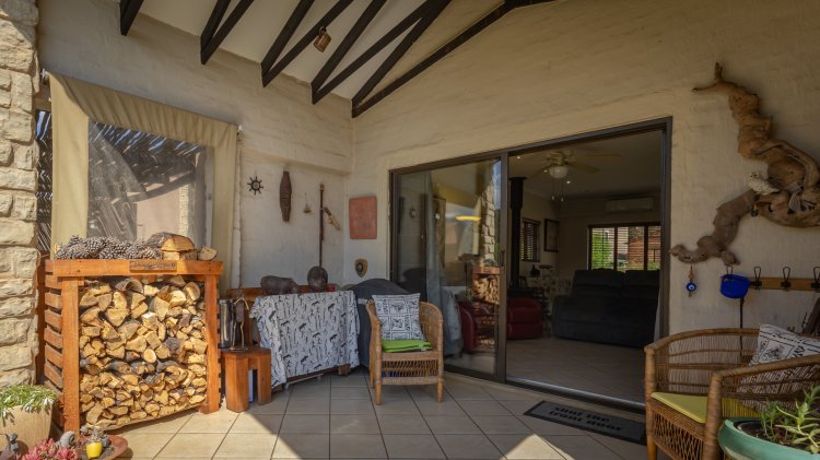 The property is powered by 8 solar panels and a solar geyser, ensuring energy efficiency and low running costs. With beautifully maintained gardens and a secure environment, this home is perfect for those seeking a peaceful, eco-conscious lifestyle where pets are welcome.