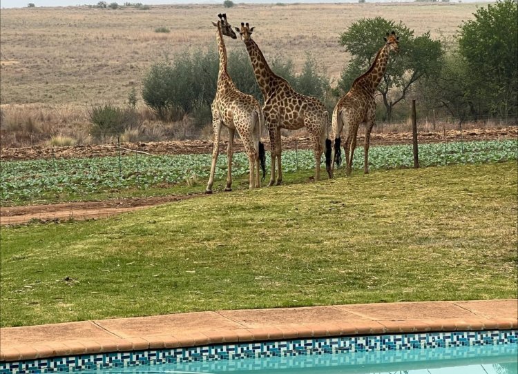 A well laid out farm house and cottage looks out over a small dam and farmland where game move freely. Giraffe, Zebra, Kudu and Impala can be seen while driving around and a Sundowner deck with superior unlimited views is a perfect spot to end a promising day.