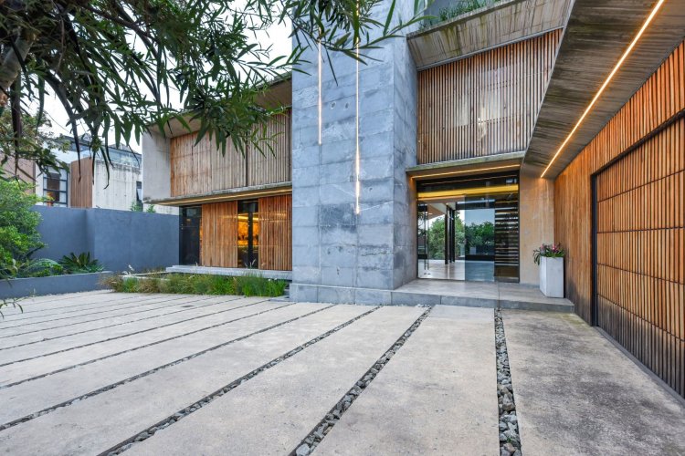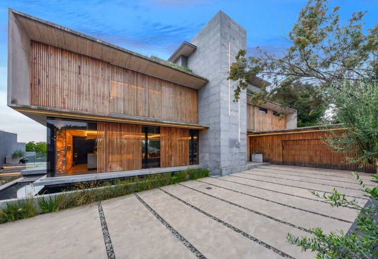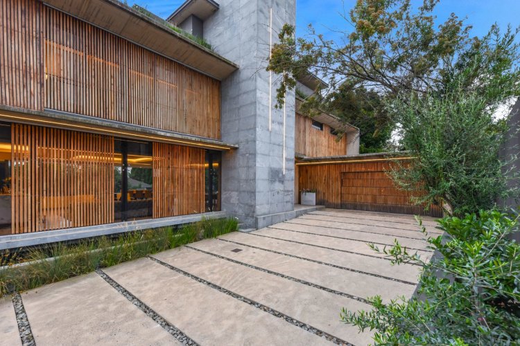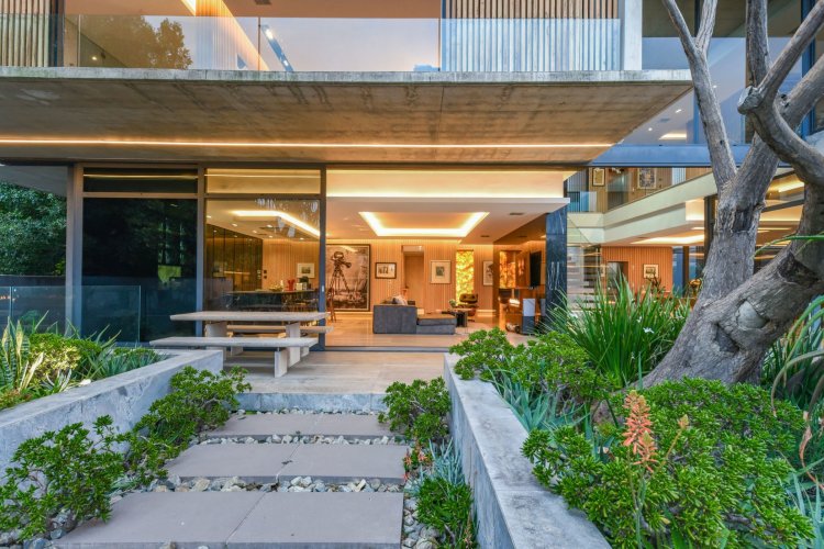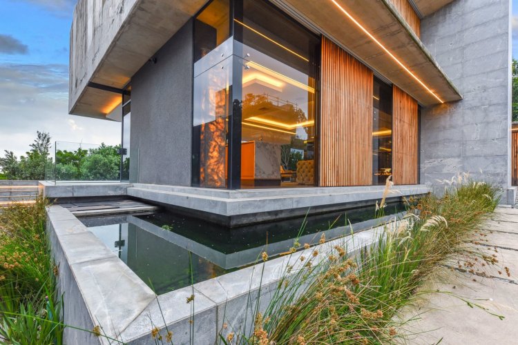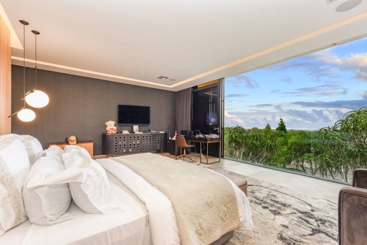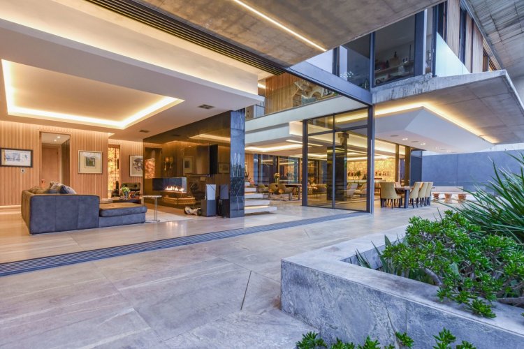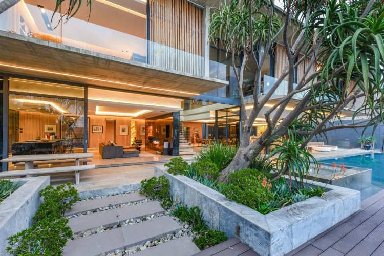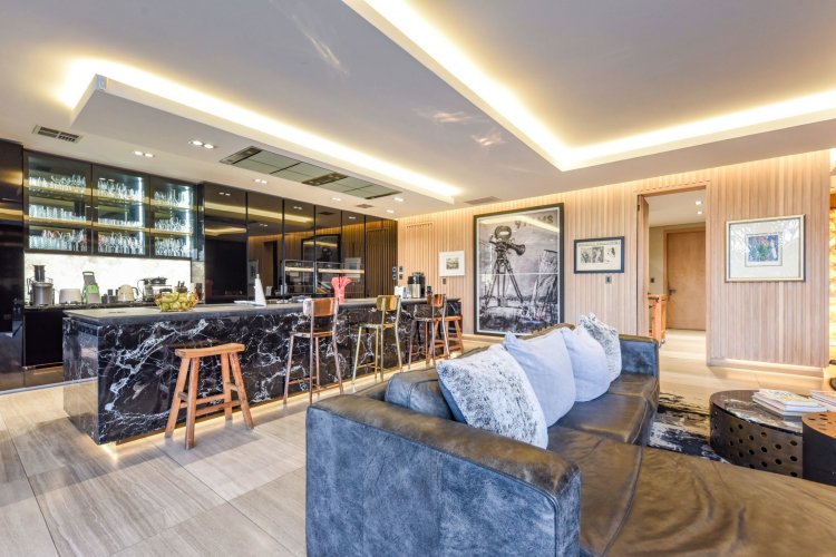 The third level is dedicated to elevated entertaining, accessed via elegant wood-panelled stairs. A built-in bar opens onto a private rooftop terrace, offering an extraordinary space to host guests while enjoying uninterrupted, panoramic views of sweeping green vistas and the natural beauty South Africa is celebrated for.