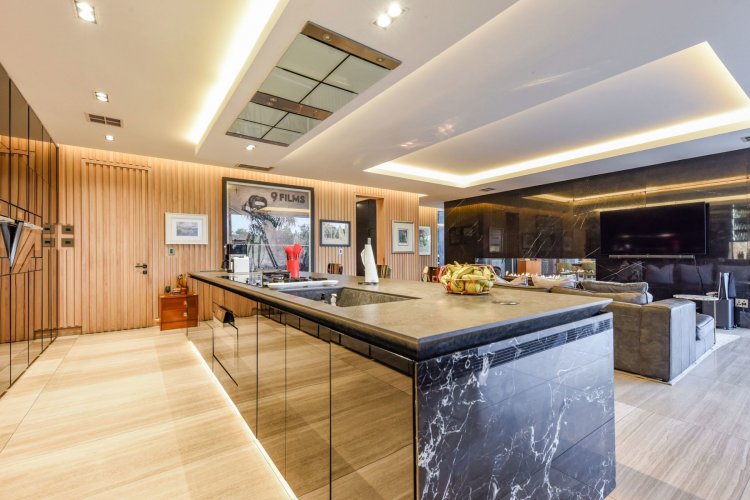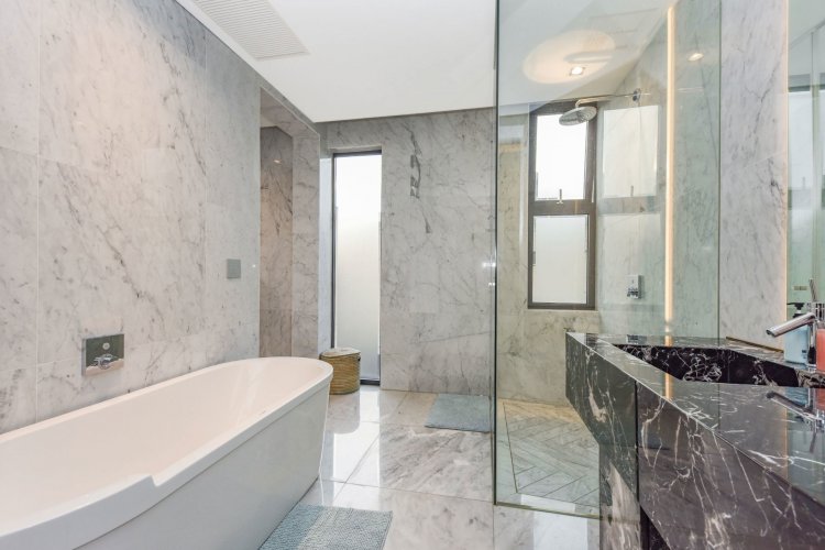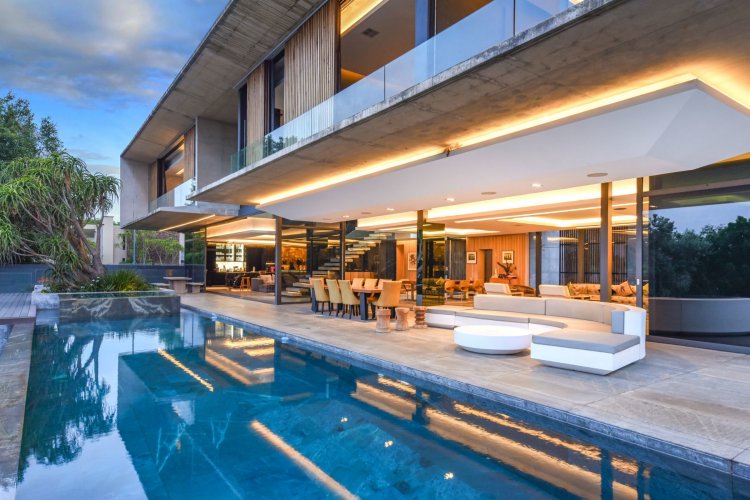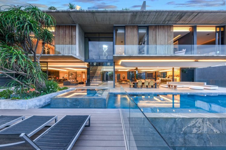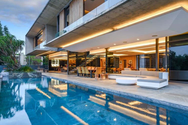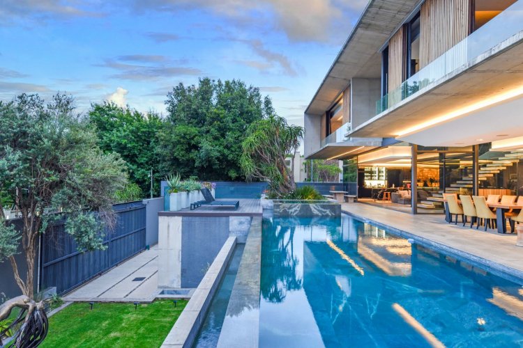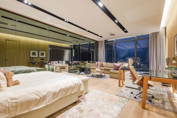 Additional features include a double garage, off-street parking for up to ten vehicles, staff accommodation with one bedroom one bathroom and a kitchenette, and a comprehensive solar system with panels, batteries and an inverter. Further highlights include a private courtyard, fish pond, boiler geysers, ducted air-conditioning, underfloor and central heating, surround sound, centralised lighting, a server room for home automation and a private elevator servicing all four levels.