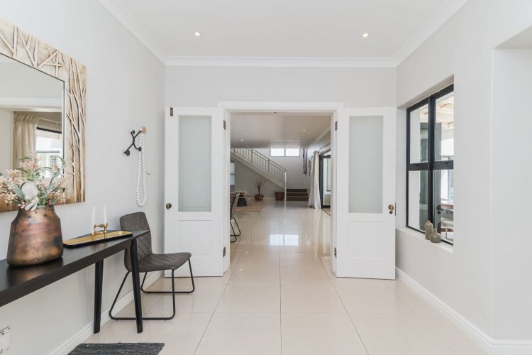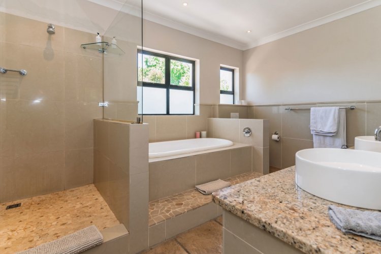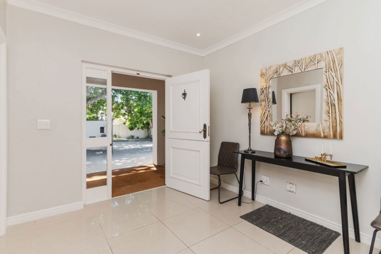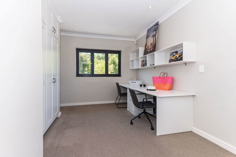 Upstairs, the bedrooms open onto a broad balcony embracing the magnificent mountain views, while 24-hour manned security at the entrance of the Close ensures peace of mind. The property's central position offers convenient access to all Constantia's amenities, top schools, and scenic country walks.