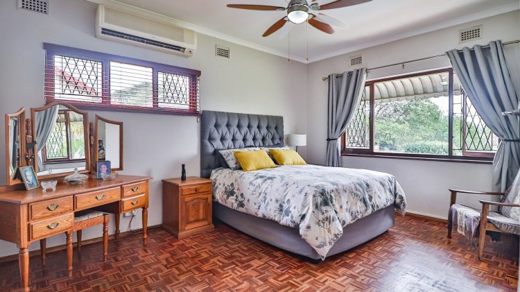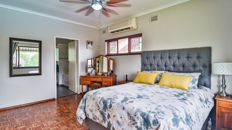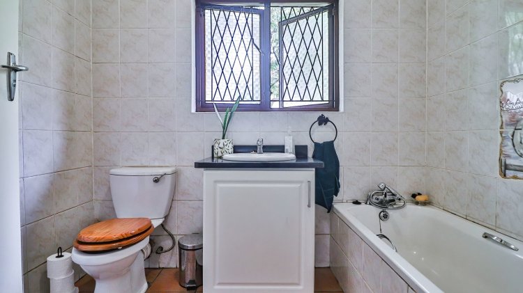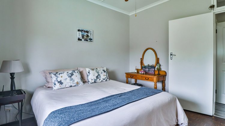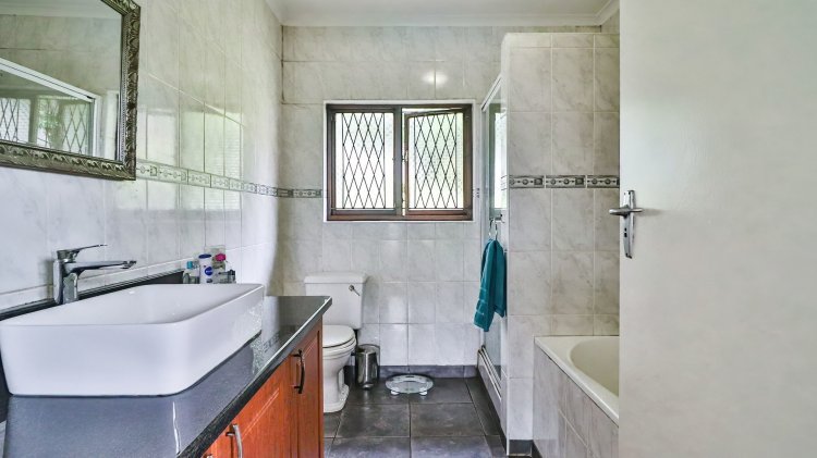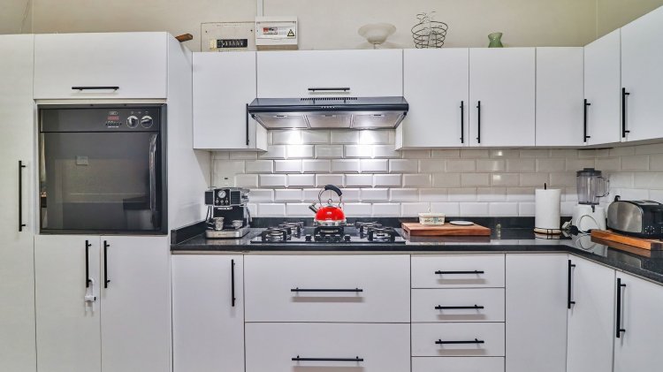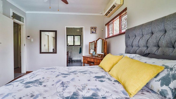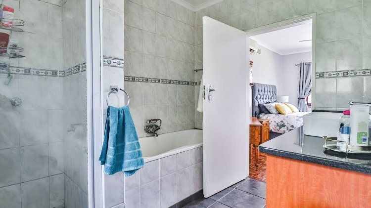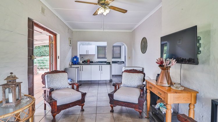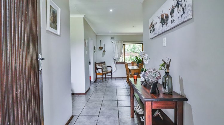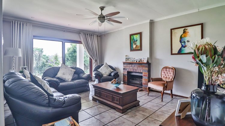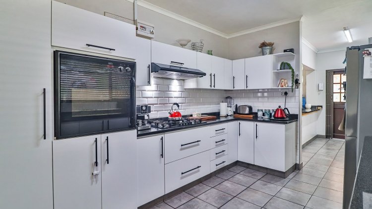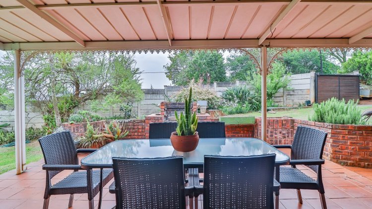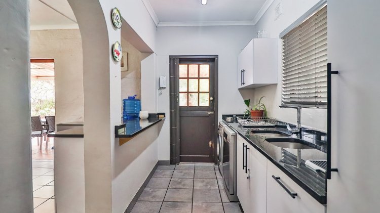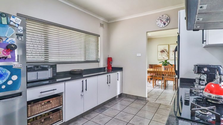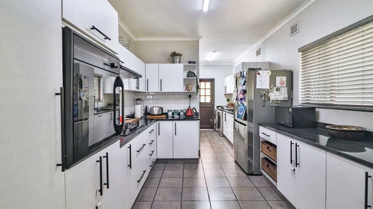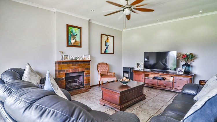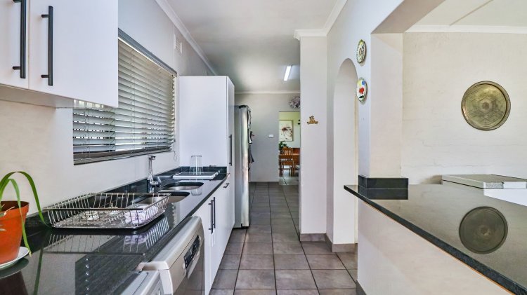 The home features 4 spacious bedrooms and 2 bathrooms, including a main en-suite. The modern galley-style kitchen is neat and functional, designed for easy living. There are two inviting lounges, both opening onto patios and entertainment areas, creating ideal spaces for family gatherings or relaxed afternoons.