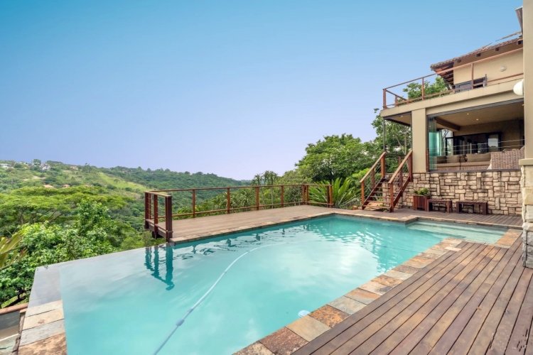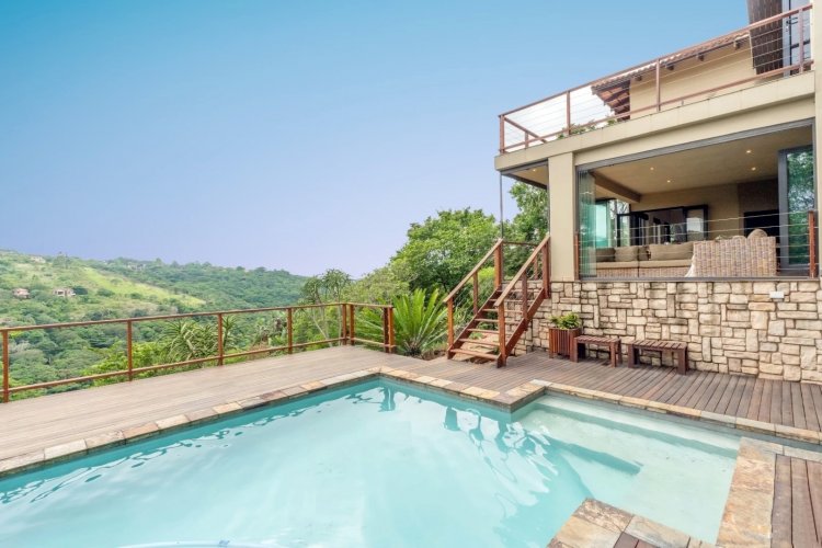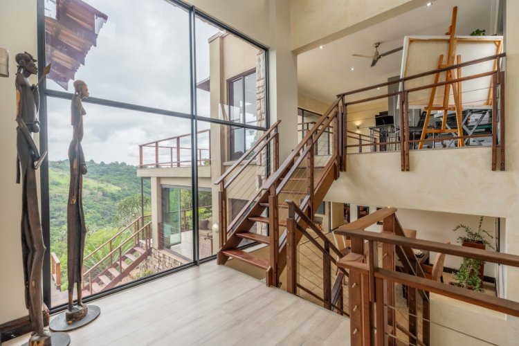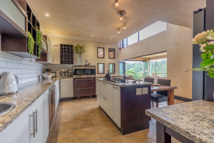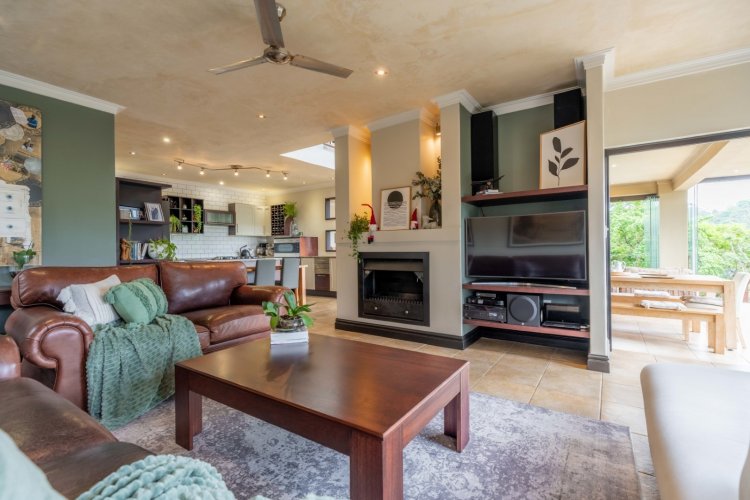 Main Features: • 4 Generously-Sized Bedrooms Each room is designed with comfort in mind, offering ample space and natural light. The master suite boasts an en-suite bathroom and captivating views. • 3 Modern Bathrooms Stylishly finished and functional, with quality fittings to match the home's elegance. • 2 Spacious Lounges Ideal for family living and entertaining, with seamless flow between indoor and outdoor spaces. • Spectacular Rim Flow Pool Positioned to take full advantage of the surrounding views, perfect for relaxing on warm summer days. • 3 Single Garages Providing secure parking and extra storage space. • Versatile Outside Laundry With potential to convert into domestic accommodation or an additional utility room. Outdoor & Unique Features: • A Private Pathway to Nature Meander through the lush, landscaped garden on a winding pathway that leads directly to the gorge. • Cliffside Deck A truly one-of-a-kind feature! Nestled into the cliffside, this secluded deck offers panoramic views of the gorge – the perfect spot to relax, meditate, or entertain guests in awe-inspiring surroundings. • Expansive Grounds With nearly a hectare of land, there's space to explore, garden, or simply bask in the beauty of your natural surroundings.