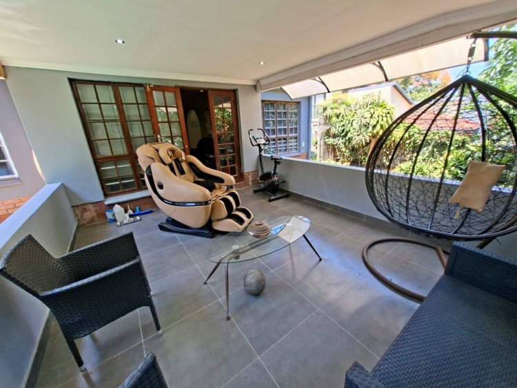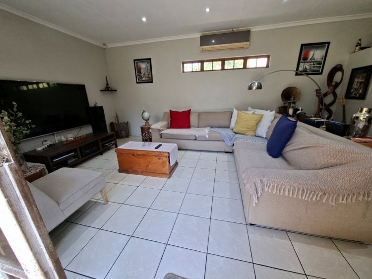 Additional features include a covered entertainment area with built-in braai, CCTV, prepaid electricity, blinds, 2 air conditioners, and a fully alarmed system.