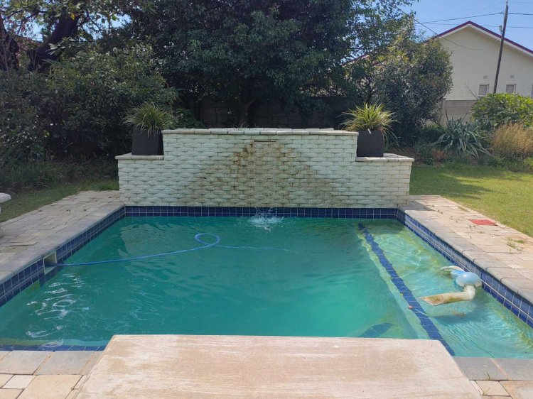 The charming swimming pool is heated by solar panels and surrounded by a landscaped garden.