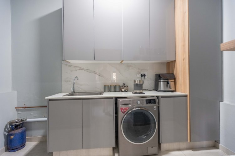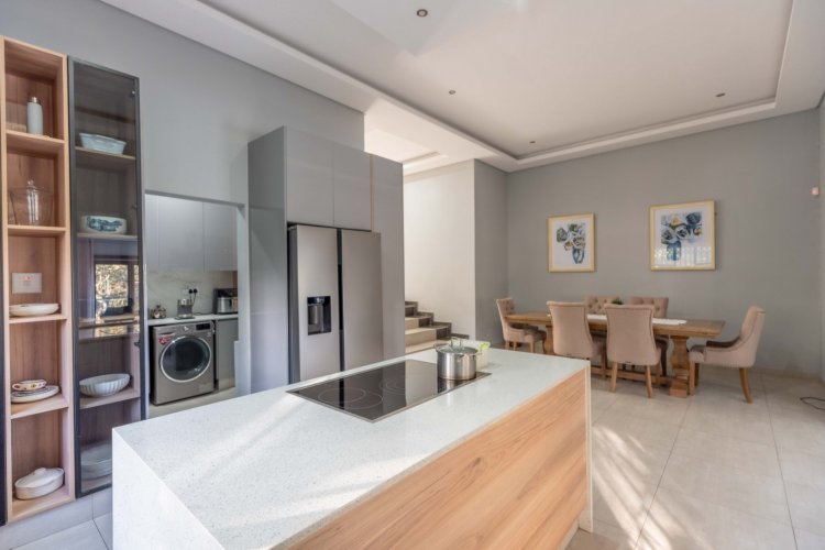 Step into a world adorned with sleek porcelain tiles throughout, exuding an aura of refined elegance and grandeur. The home features two exquisite lounges, seamlessly flowing onto a sun-kissed balcony – a perfect sanctuary for morning coffee or twilight musings. Host esteemed guests in the dining room fit for royalty, adjacent to a gourmet kitchen designed to delight even the most discerning gourmet.
