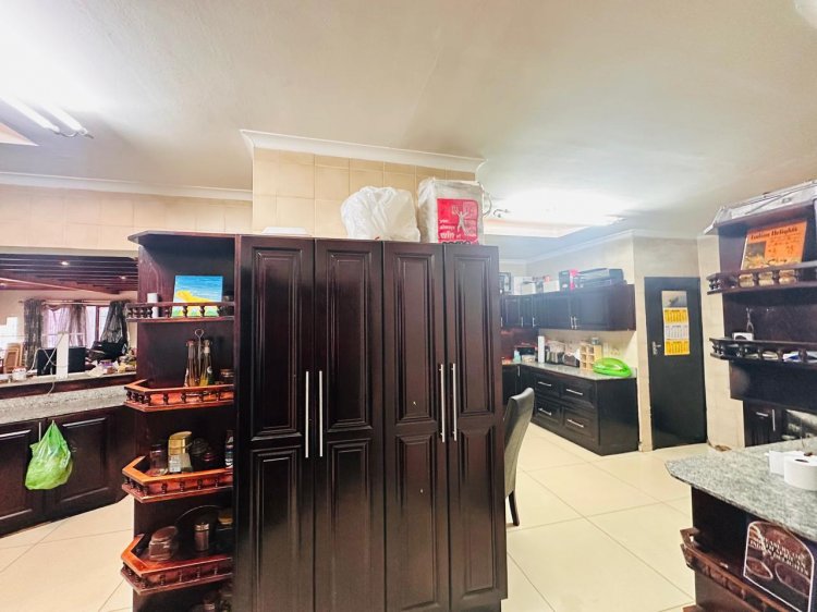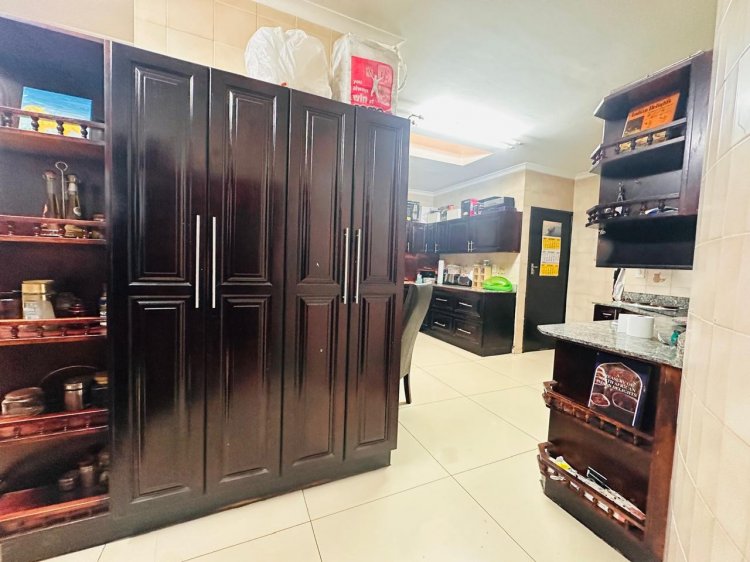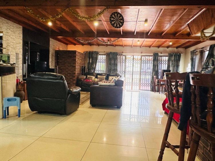 Modern, fully tiled, spacious 5 beds, 3 baths, 2 lounges, home with modern built-ins. Built on 2023 m2 of level land. Features modern fully fitted open plan kitchen, private lounge, entertainment lounge, with built-in pub, separate dining room, laundry and 2 x double garages.