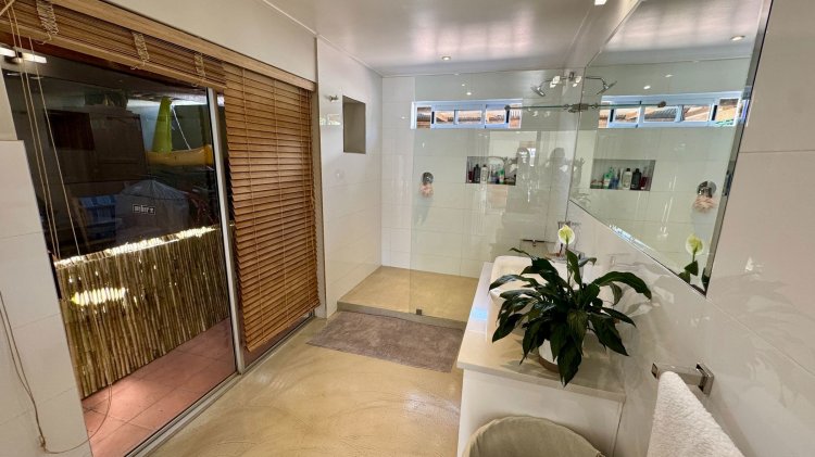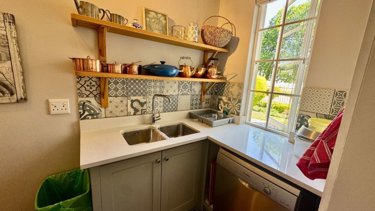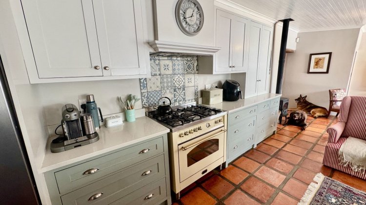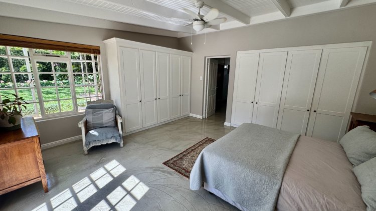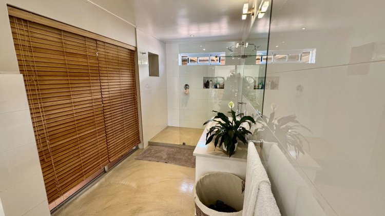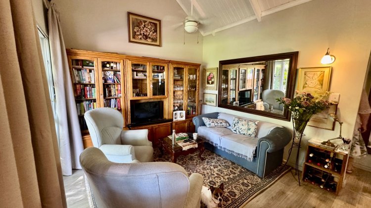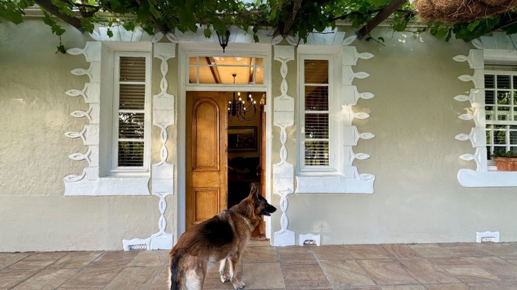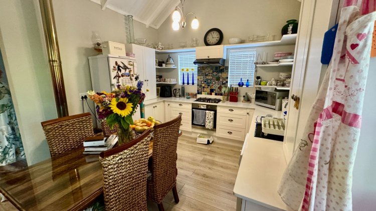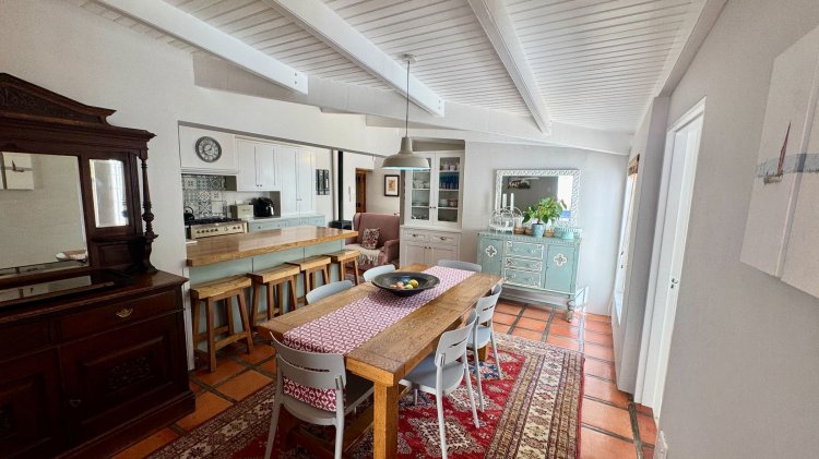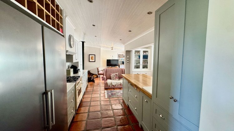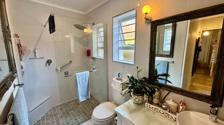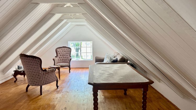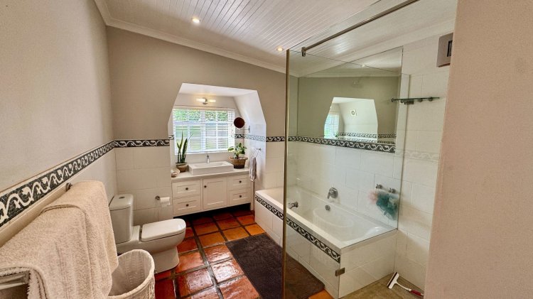 Discover this beautiful character home in the highly sought-after area of Swellendam. This family residence boasts tasteful décor throughout. The heart of the home features open-plan living areas that seamlessly connect the spacious main lounge, living room, kitchen, dining area, and home office. Stacking doors open onto an undercover patio with a built-in braai, ideal for indoor-outdoor entertaining, all overlooking a stunning garden with mature trees and a sparkling pool. Additionally, there is a charming one-bedroom garden cottage for guests, with a front stoep nestled under cascading trees, fully equipped for independent living. The property includes a double garage with a double covered port, ample off-street parking space. Above the garage is a versatile loft guest room en-suite, perfect for a workspace or hobby area. The home showcases wooden floors, doors, and windows, with later additions featuring terracotta tiles and screed floors. The Erf spans 1,125m², with a total building size of approximately 365m².