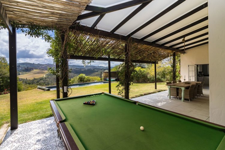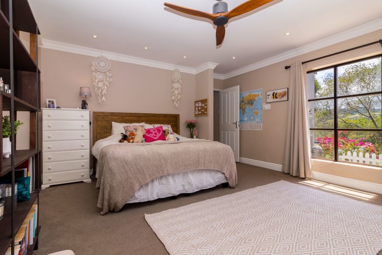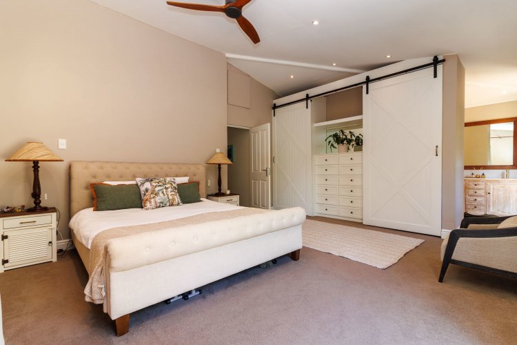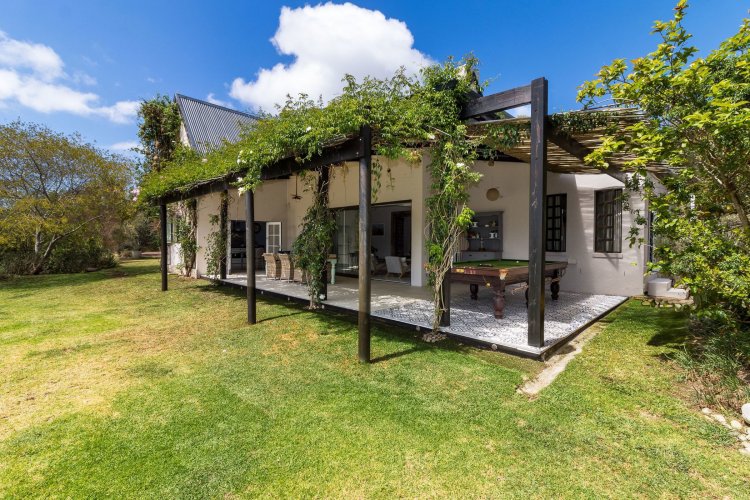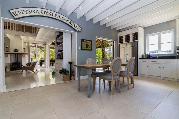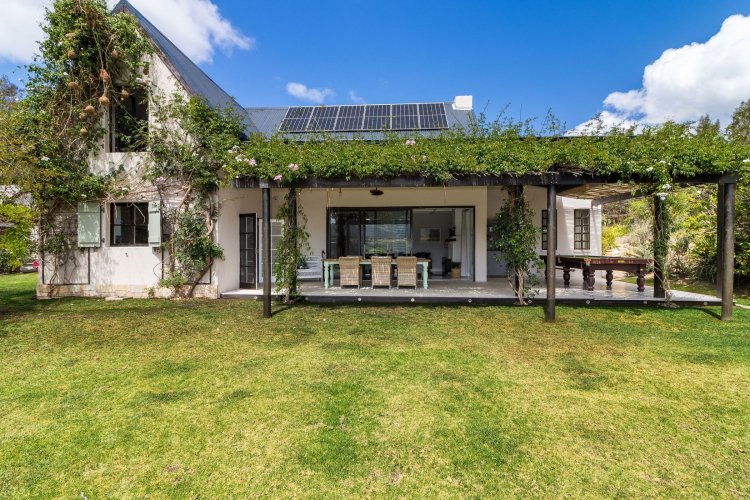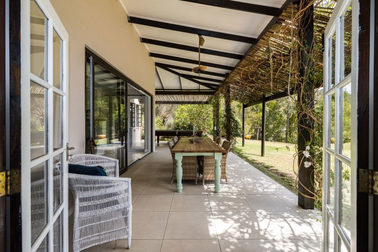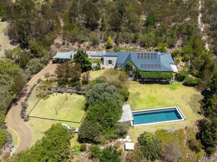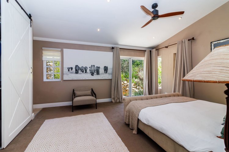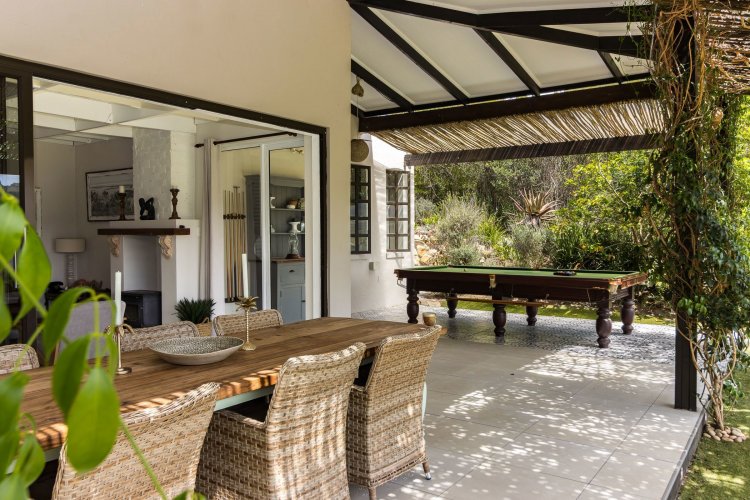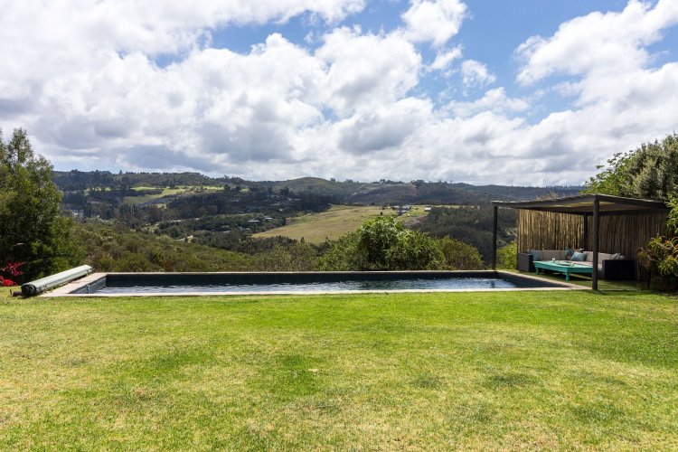 Welcome to this beautifully appointed colonial-style residence in the sought-after Eastford Vale, Knysna. Set on a large and completely private stand, the home blends timeless charm with modern comfort, offering generous space, character-filled design, and an exceptional sense of tranquillity. The main living areas feature high ceilings, a wood-burning fireplace, and large aluminium-and-wood-frame windows that invite natural light throughout the day. Outdoor living is equally impressive, with a 13m x 5m fresh-water pool (complete with SaltLogic pump and pool cover), a poolside gazebo, and a full volleyball court, creating the perfect environment for relaxed family living and effortless entertaining.
