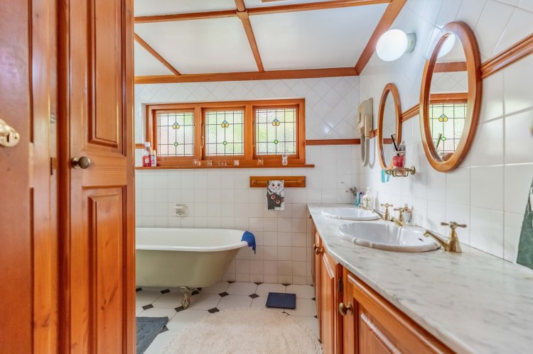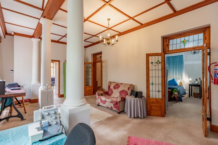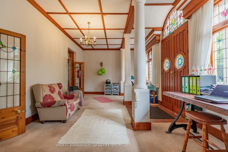 Home Features • 5 Spacious Bedrooms (1 en suite) • 5 Bathrooms • 2 Reception Rooms — ideal for formal dining or family living • 2 Kitchens and a scullery • Fireplace, ceiling fans, and detailed wood finishes throughout • Grand dining hall and inviting lounge spaces that capture natural light through coloured stained glass