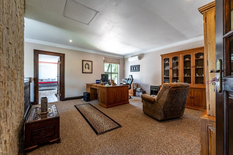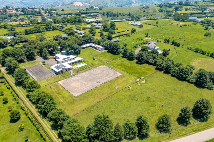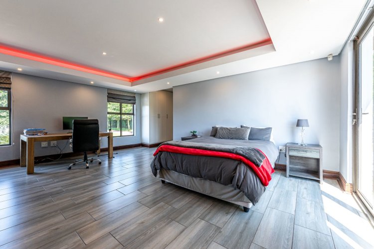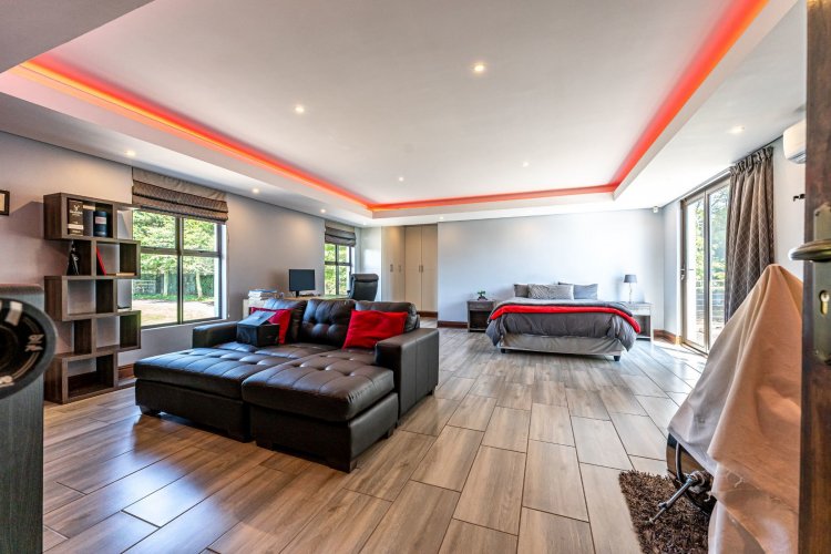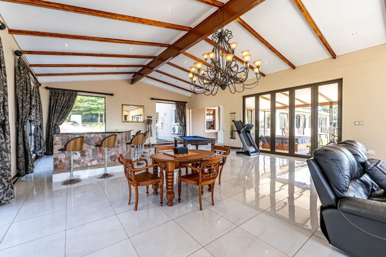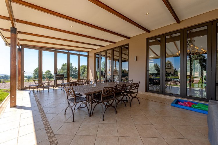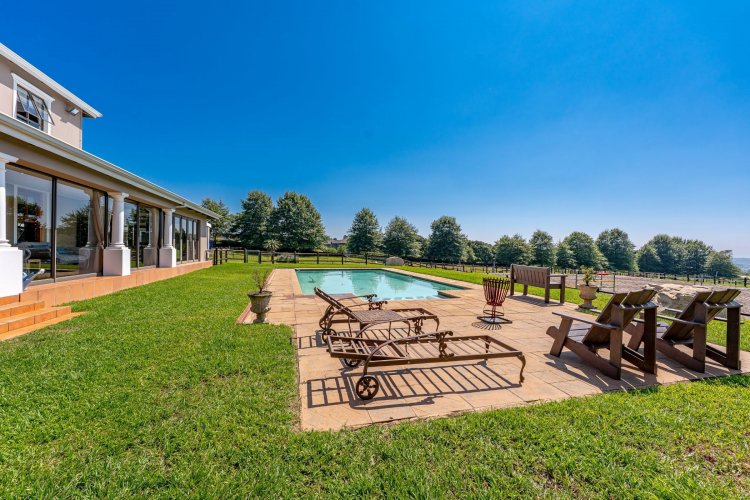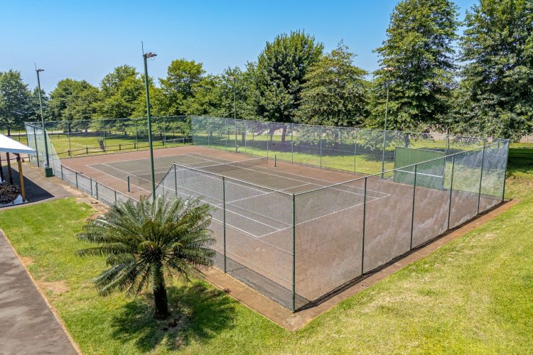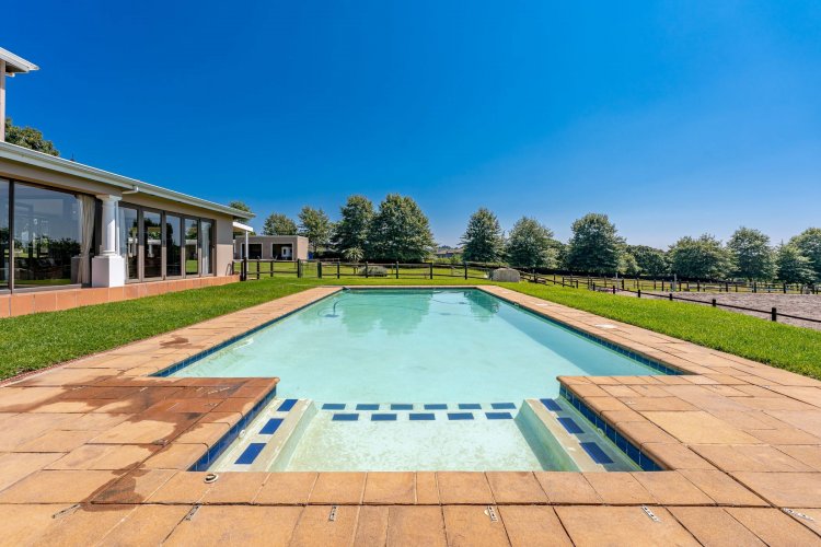 Tennis court with flood lights for your A game and a Jacuzzi to relax in thereafter. 40 solar panels and 9 water tanks in total giving peace of mind. Well secured with electric fencing.