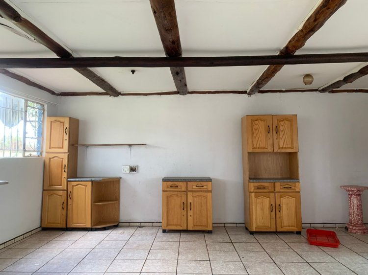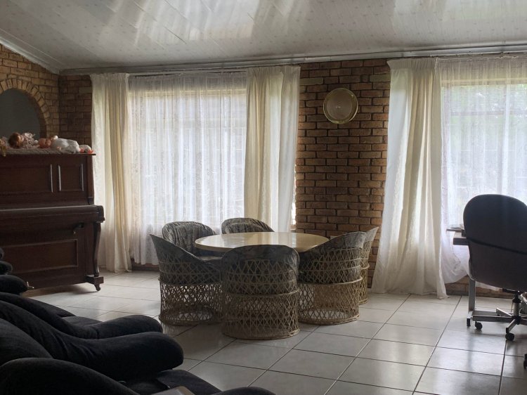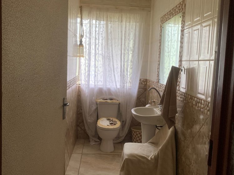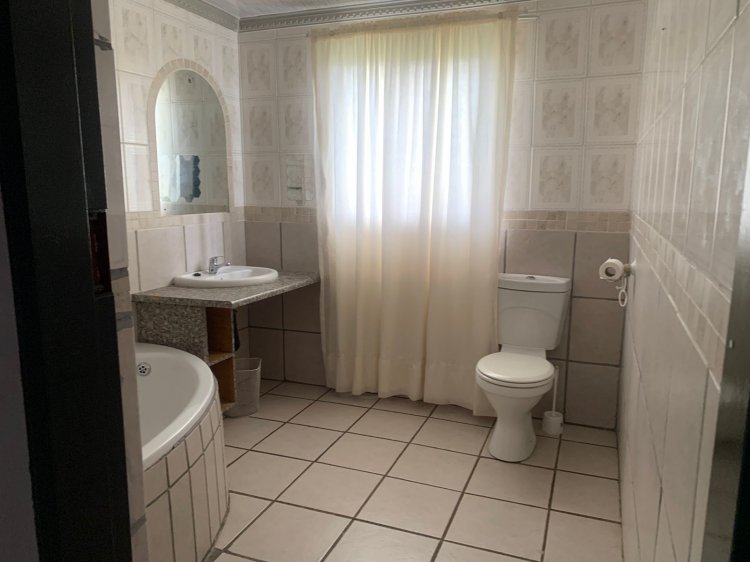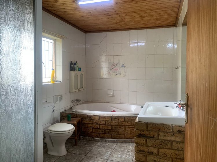 Outside is a huge garden that has irrigation sprinklers and a borehole. There is another stand alone flatlet with own geyser. The large open plan living room, kitchen and dining room makes it ideal for family moments. It also has a big bathroom with tub, shower, toilet and basin.