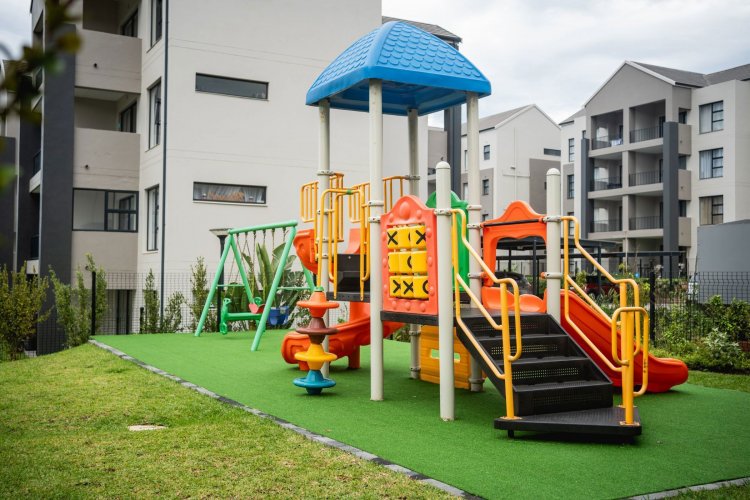 Landscaped park with braai facilities and trampoline