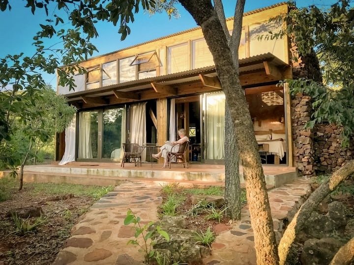 Discover true seclusion at the Bakoni Hideaway, an off-the-grid cottage inspired by the ancient stone circle ruins created by the Bakoni people centuries ago. Designed to blend seamlessly into its natural surroundings, this retreat offers tranquillity, heritage, and breathtaking mountain views.