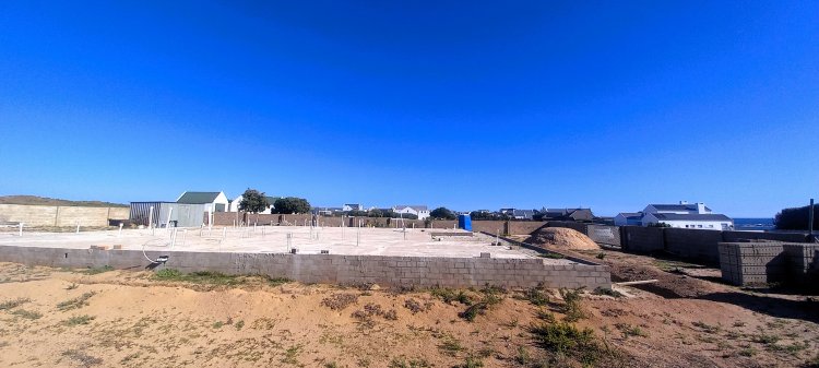 This plot is presented to you on a Exclusive Mandate. Just a two-hour drive from Cape Town, you'll discover Duyker Eiland, situated along a stunning stretch of coastline on the West Coast, near the Columbine Nature Reserve. This suburb offers one of the few opportunities in St Helena Bay to acquire plots of this size. The plot in question is already fully walled, with a foundation and floor in place, and comes with approved building plans. A huge bonus is that the plot faces North to North West which means sun all day long and facing away from the South Easter wind.