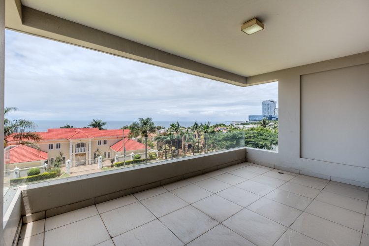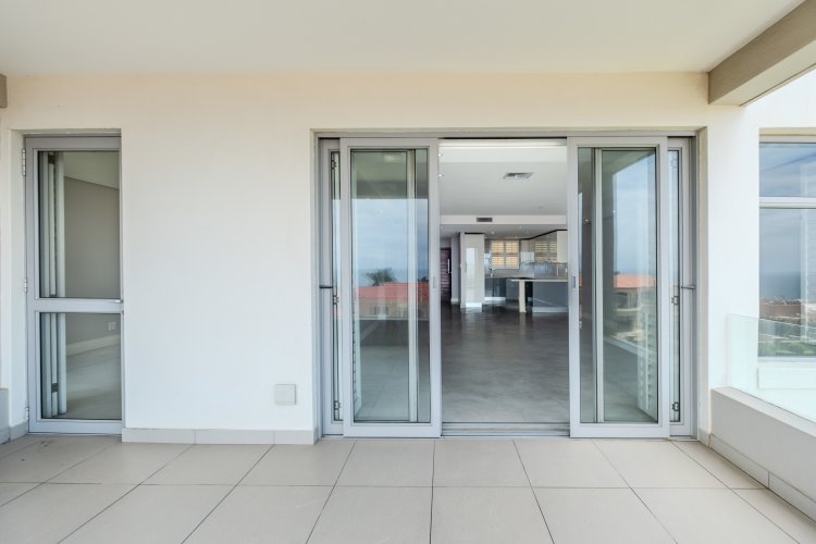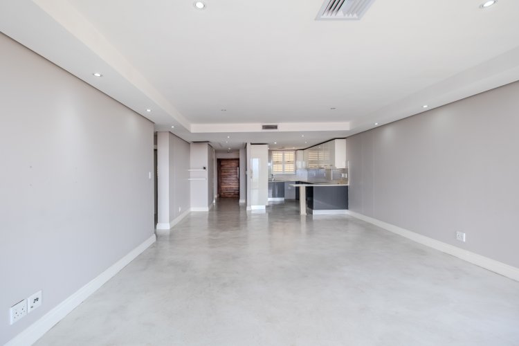 This stylish two bedroom two bathroom apartment is ideally located in the heart of Umhlanga Rocks and offers beautiful sea views and modern coastal living. The open plan kitchen and living area creates a seamless flow, finished with screed concrete flooring, generous cupboard space, and Caesarstone countertops.
