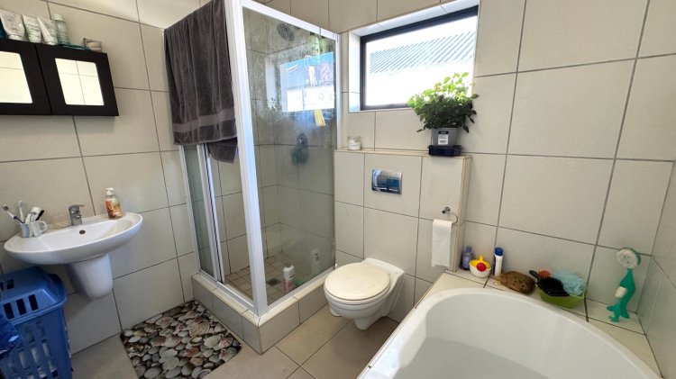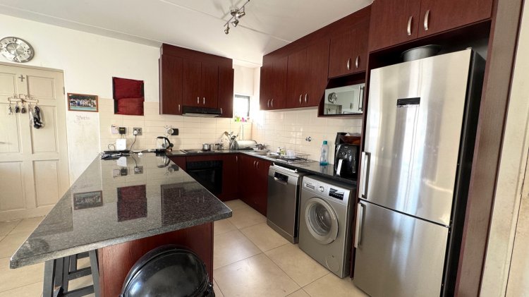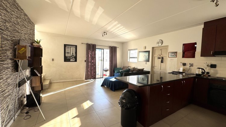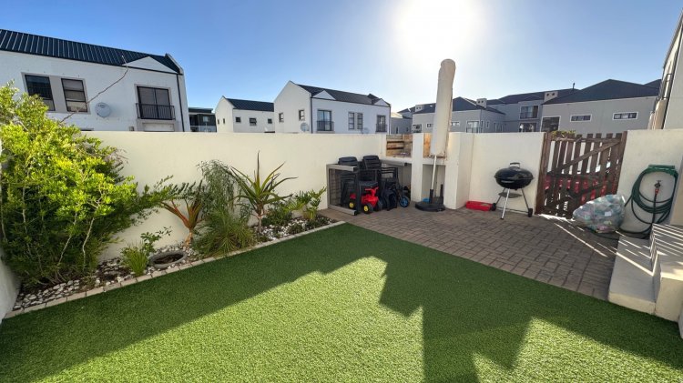 The home boasts a spacious open-plan living area and kitchen, creating an inviting space for everyday living. The highlight of this property is the large private garden, featuring astro turf and a built-in braai, offering a low-maintenance outdoor retreat. Adding to the convenience, the property includes a garage with direct access into the home, ensuring security and ease of entry.