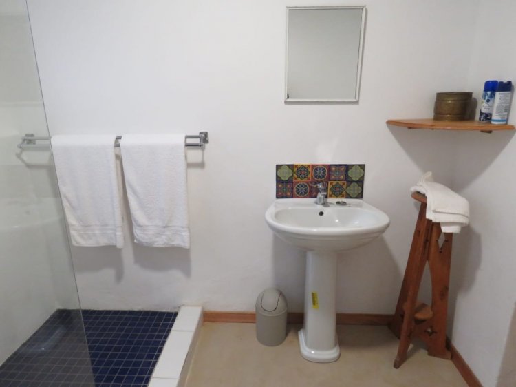 The inviting main house features one large, sunny bedroom and one well-appointed bathroom. Enjoy seamless living with an open plan living area and kitchen that serves as the heart of the home. From the living area’s wooden doors, step out into a generously sized patio and established garden featuring a mature fruit-bearing avocado tree, ideal for relaxation and entertaining.