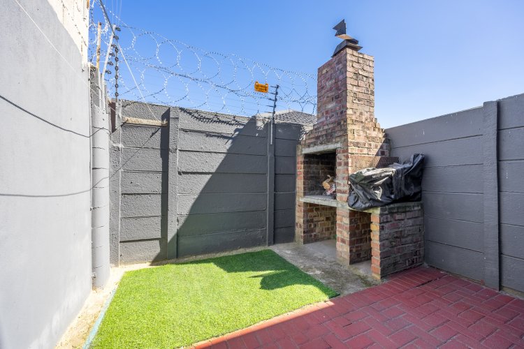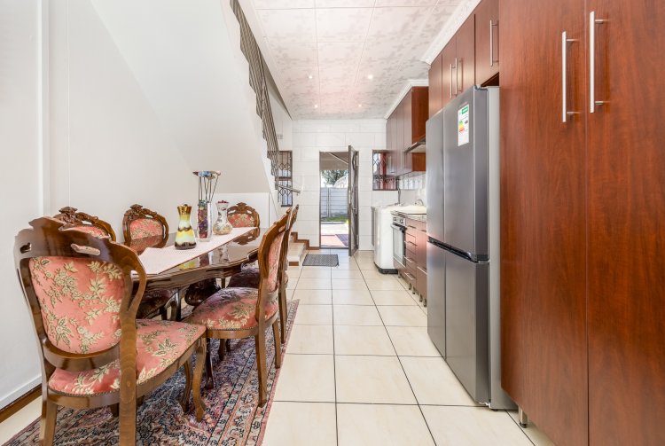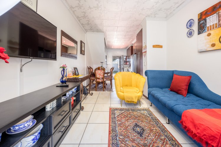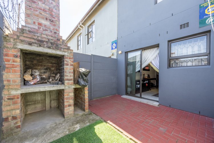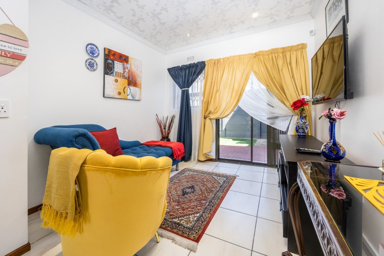 Open-plan kitchen and lounge area with sliding door leading to the outside braai area