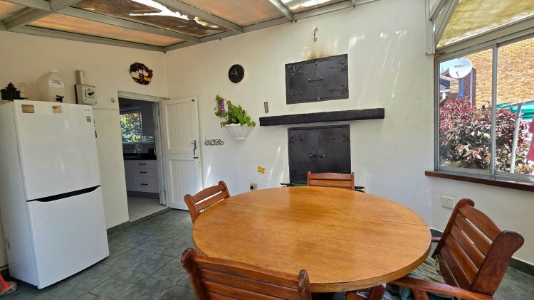 A separate living room with a chandelier and sliding doors adds a touch of charm, and an indoor braai area provides the perfect space for relaxed entertaining in any weather.