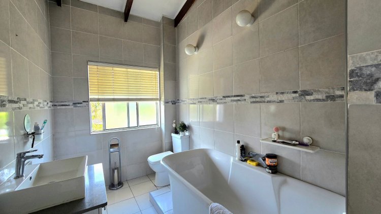 Outside, you'll find a pet-friendly garden, water tanks, a courtyard, and a washing line, all secured by a perimeter fence and enhanced by burglar bars and security gates.