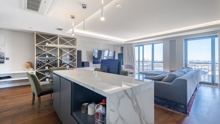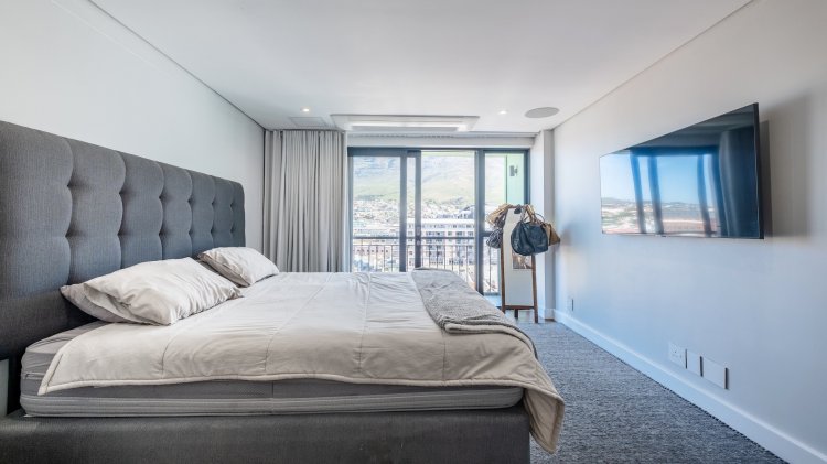 Experience luxury living in this stunning penthouse boasting uninterrupted views that stretch from Blouberg across the Waterfront, and all the way to Table Mountain. The spacious interior offers ample cupboard space throughout, with built-in display cabinetry in the lounge adding a sophisticated touch. Both bedrooms feature charming dandelion-inspired light fittings, creating a warm and elegant ambiance. The ultra-modern kitchen is designed for both functionality and style, and includes an indoor built-in braai area - perfect for entertaining all year round. Residents can enjoy access to the building’s beautiful entertainment area, outdoor gym, and benefit from 24-hour security. Conveniently located just minutes from Cape Town City Centre, this penthouse offers the best of comfort, convenience, and contemporary living.