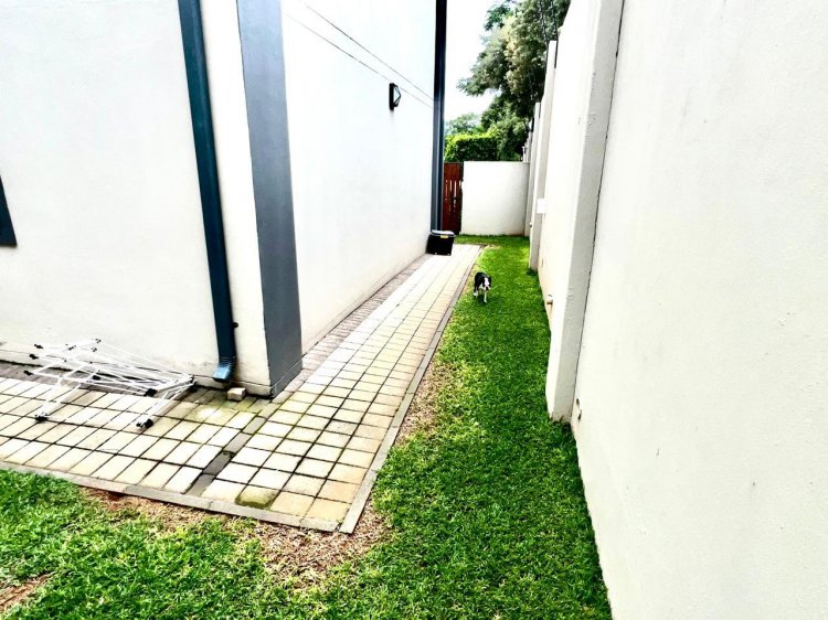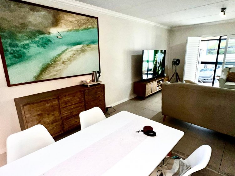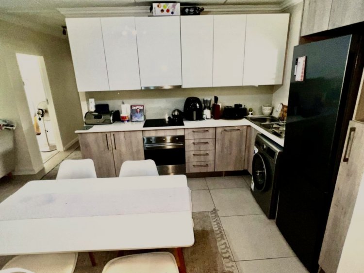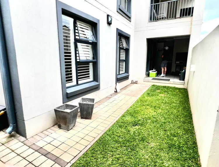 Contemporary ground floor unit featuring a private 3/4 around-access garden. The modern kitchen boasts practical yet stunning finishes. It includes two generously-sized bedrooms, with the main suite offering an on-suite bathroom complete with a shower and beautifully styled decor. @nd bathroom is elegantly appointed. As well as has washing machine fitments space. The spacious lounge and dining area provide an ideal blend of space and elegance. Additionally, the unit comes with an enclosed glass braai area and a patio, perfect for entertaining.