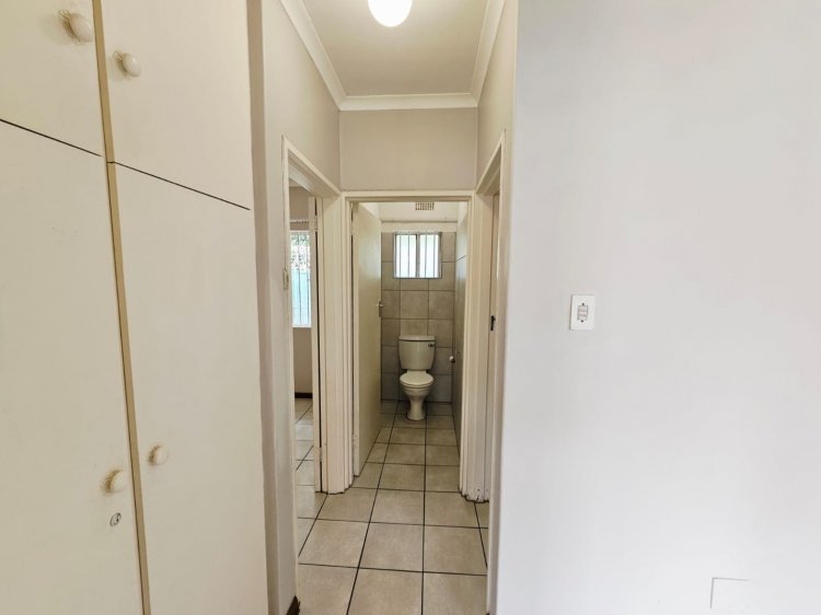 This move-in-ready home offers two well-sized bedrooms, both fitted with built-in cupboards. The full bathroom is complemented by a separate toilet, as well as a convenient storage cupboard in the passageway.
