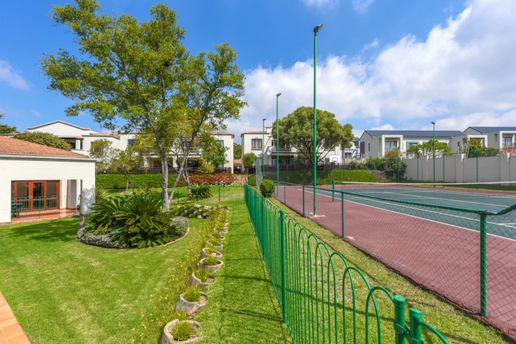 The complex itself is designed for relaxed living, featuring two sparkling swimming pools and a tennis court, adding to the lifestyle appeal.