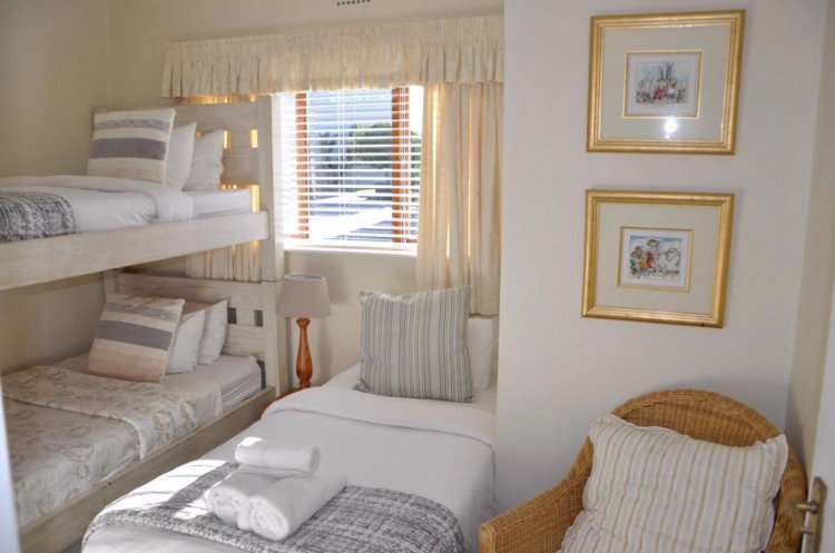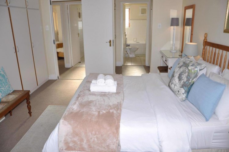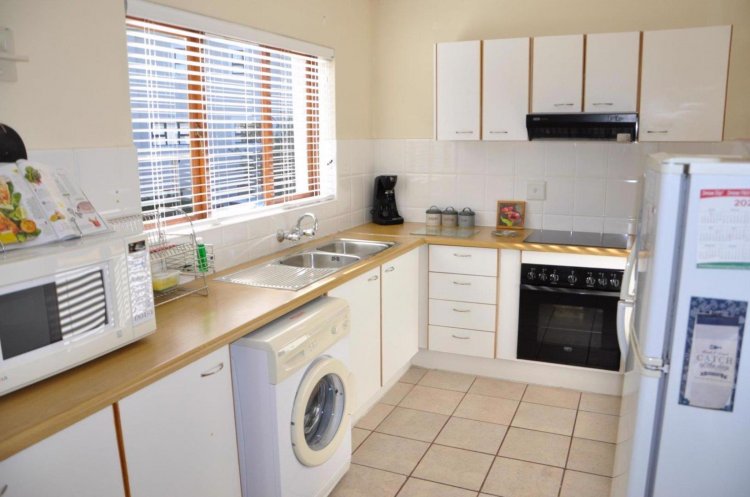 The apartment consist of three bedroom, 2 bathrooms with breathtaking views over the valley below. This upstairs unit is easily accessed by 8 small stairs, two of the carpeted bedrooms have wonderful views over the valley. The kitchen is light and airy with a large serving / breakfast nook port. The nice sized bright and airy lounge/dining room also looks over the valley and leads to a large patio from where you can enjoy breakfast and sundowners that will take your breath away.