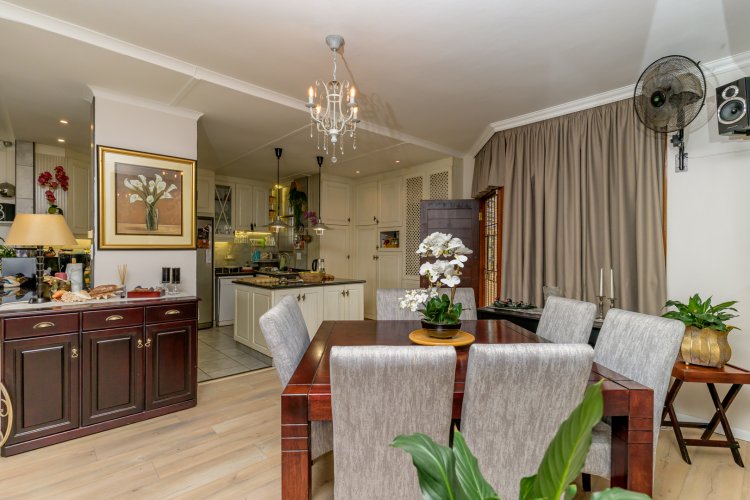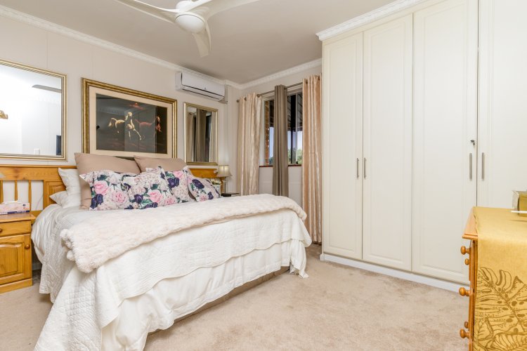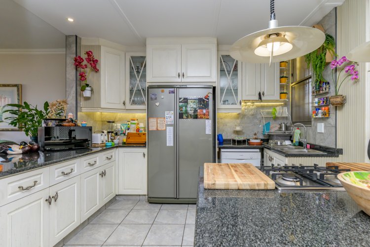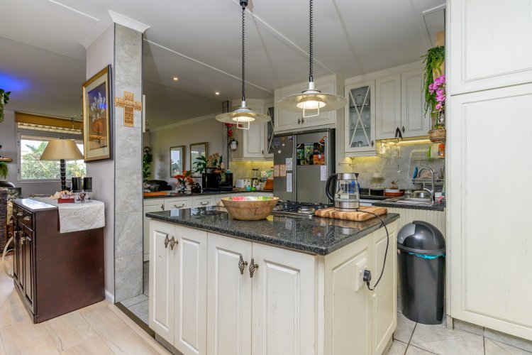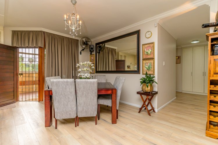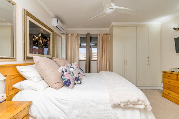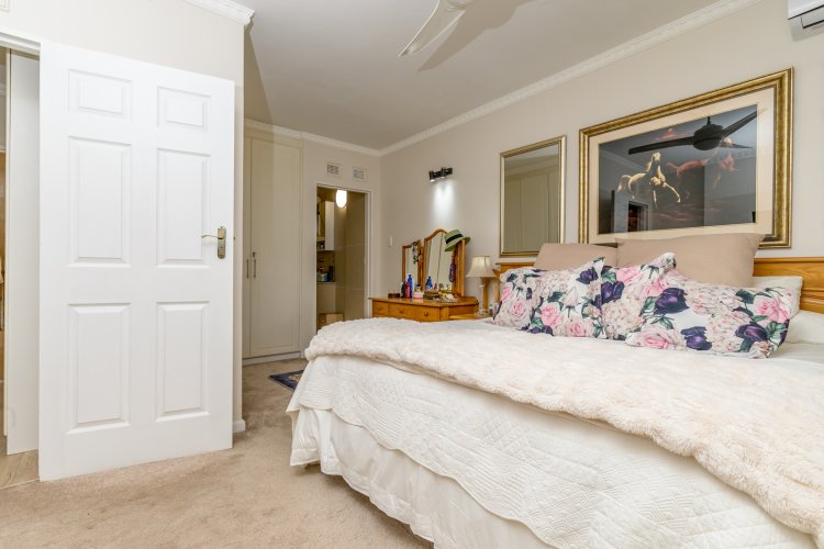 Features: 3 bedrooms, all with built in cupboards and air conditioning units; 2 bathrooms, including a modern en-suite, contemporary kitchen with modern finishes. Extra large double door garage with a separate storeroom. Secure, sought after and very well maintained complex with a communal swimming pool.