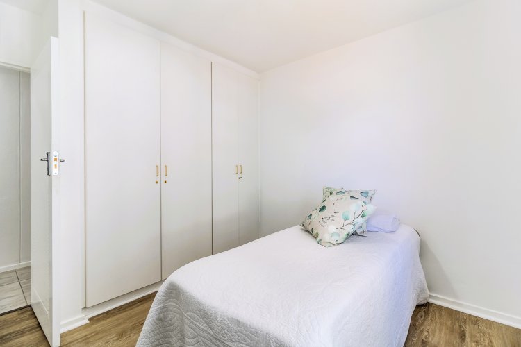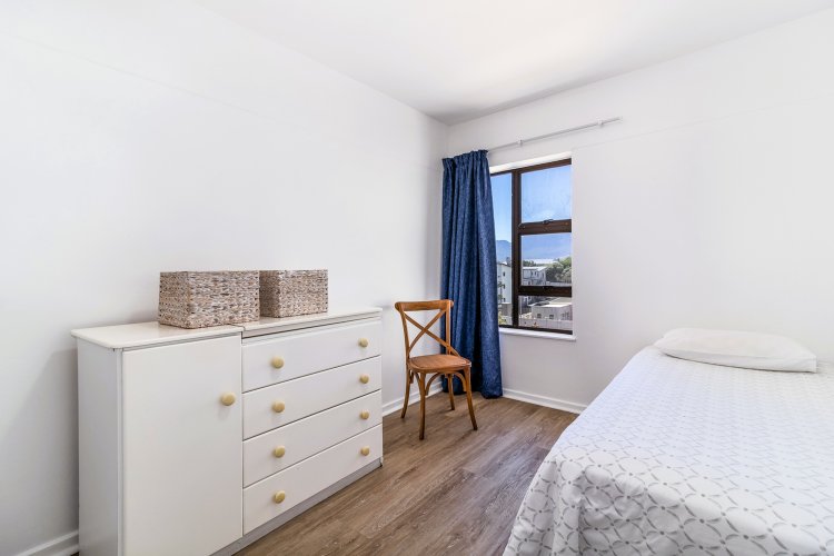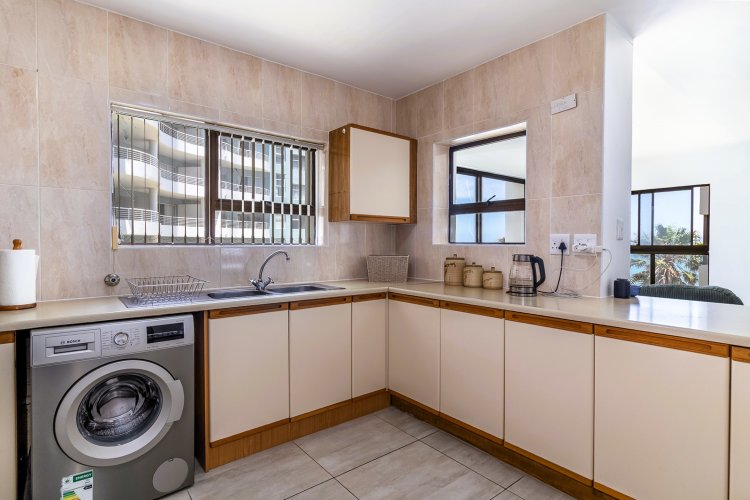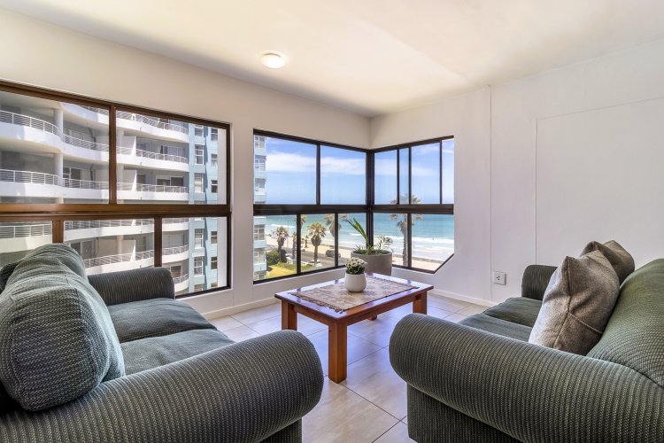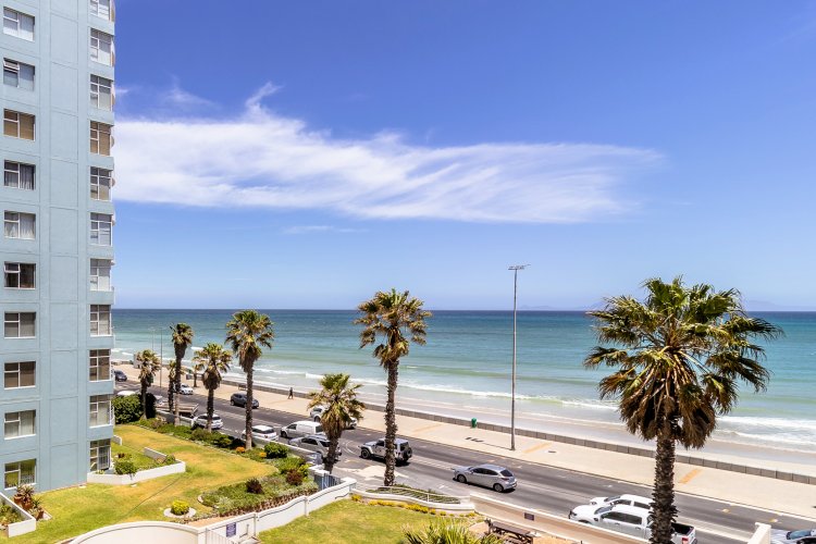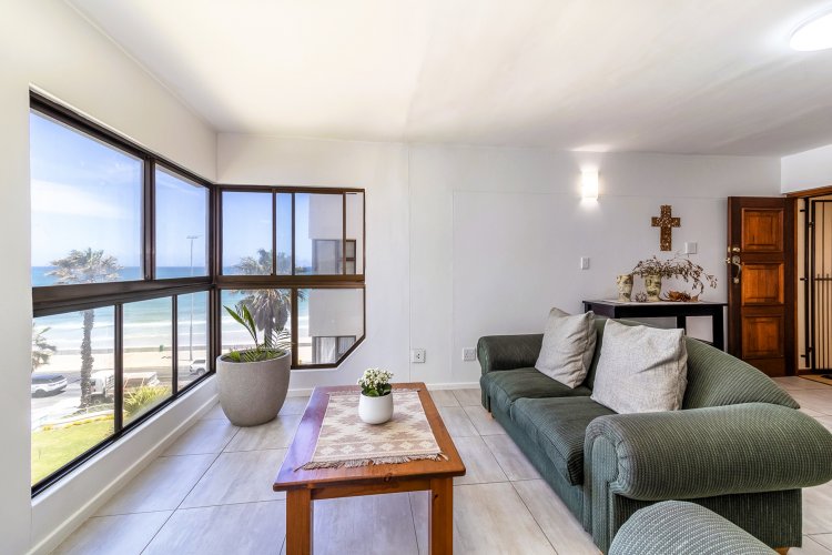 Lovely 4th floor flat on Strand's Golden Mile with expansive sea views from the living room. Unusually large, this apartment feels more like a house. Beautiful floors and bathrooms add to its charm. All three bedrooms have built in cupboards. The entire flat, except for the spacious kitchen, has been upgraded. A single, lock-up garage in the secure grounds is a scarcity in a beach front apartment building.