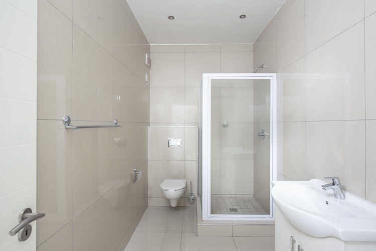The kitchen is stylishly equipped with Caesarstone countertops, a centre island, electric cooking and washing machine connections. All three bedrooms are generously proportioned with built in cupboards and sleek tiled flooring. The main bedroom includes aircon and an elegant en suite bathroom. The second bathroom serves the remaining bedrooms with contemporary finishes.