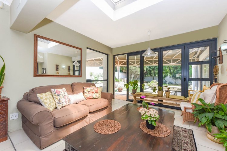 A spacious second lounge with a skylight, and direct access to the pool and lush garden creates the perfect setting for relaxation or entertaining. A guest cloakroom adds to the home's convenience.