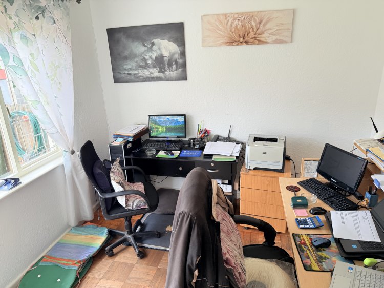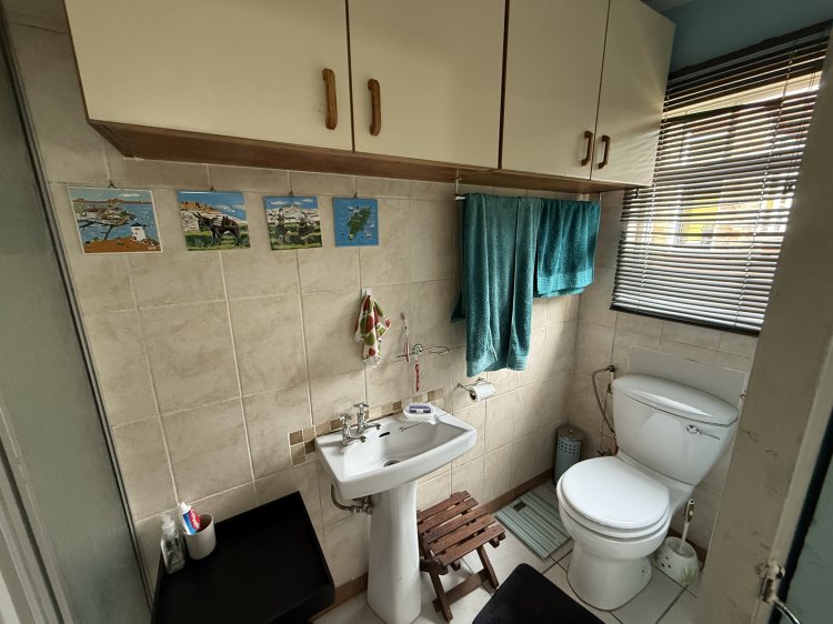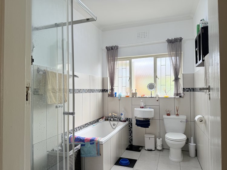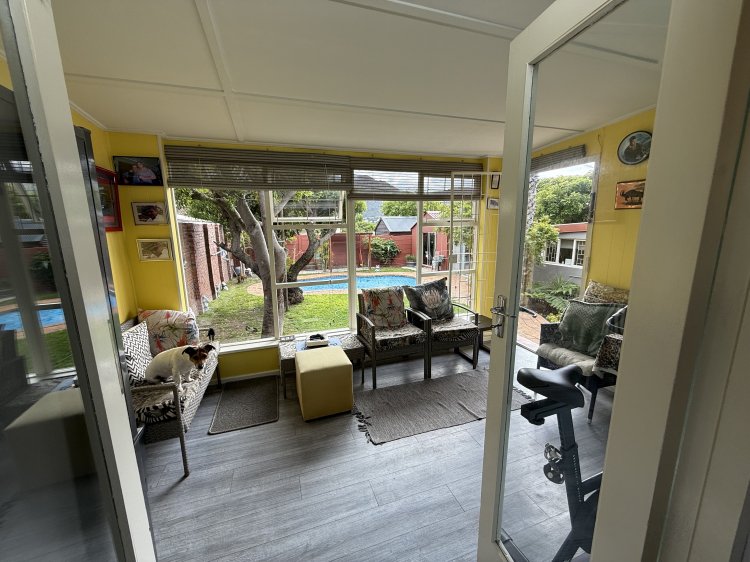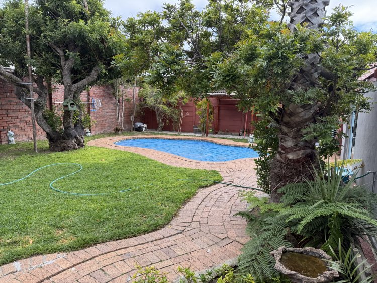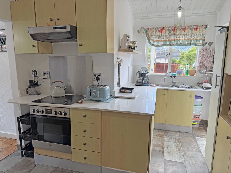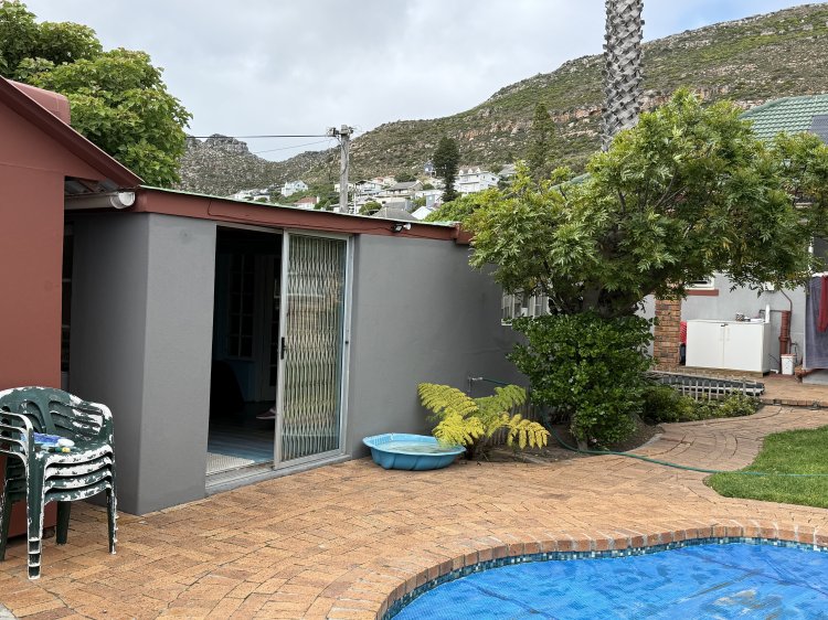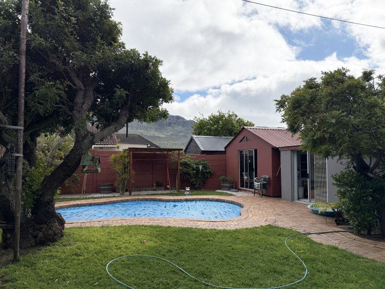 • 3 bedrooms, full family bathroom • Warm parquet floors, lounge with wood fireplace → open‑plan kitchen & dining • Enclosed patio with mountain and garden views; pool + green lawn • Braai/games room + separate flatlet (kitchenette & bathroom) for guests or income • Prime location: schools, shops, Village, restaurants, beach all nearby.
