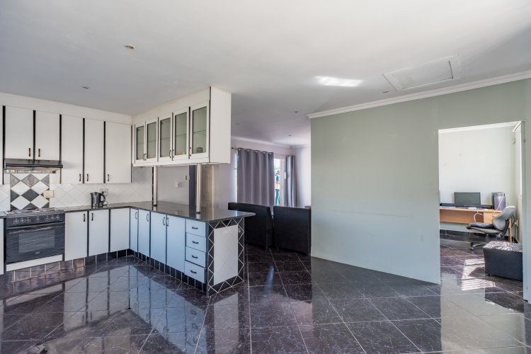 The open-plan lounge and dining area flows effortlessly outdoors, opening onto a pool and private backyard—perfect for weekend braais, kids’ laughter, or simply unwinding after a long day. Privacy is a bonus here, with the outdoor space cleverly secured from neighbouring properties.