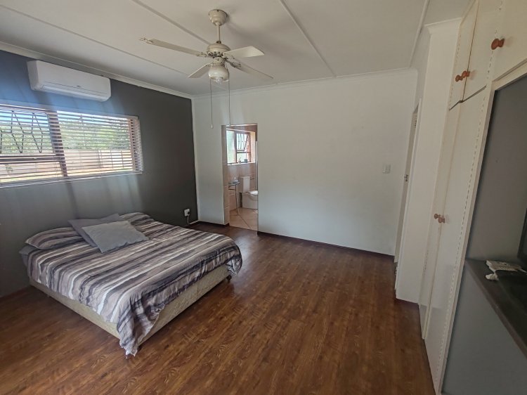 The property also includes three garages, with one garage providing direct access to the braai area. The home is fully walled and secured with a remote-controlled access gate, ensuring privacy and peace of mind.