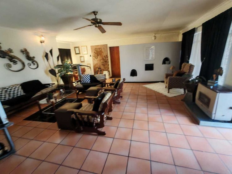 . Reliable borehole and JoJo tanks with motor for easy garden irrigation. . Covered parking for a caravan, double automated garage, and additional double carport. . ADSL internet connectivity and anthracite stove for cozy winters