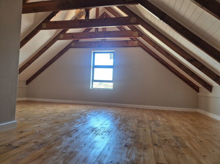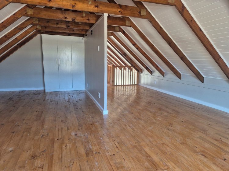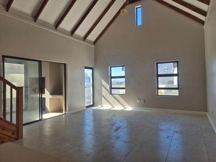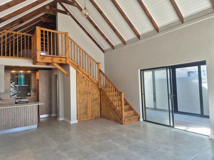 The functional kitchen flows naturally into the living area and braai room — a welcoming space for gathering and cooking. The loft-style third bedroom adds flexibility, ideal as a guest suite, home office or creative nook.