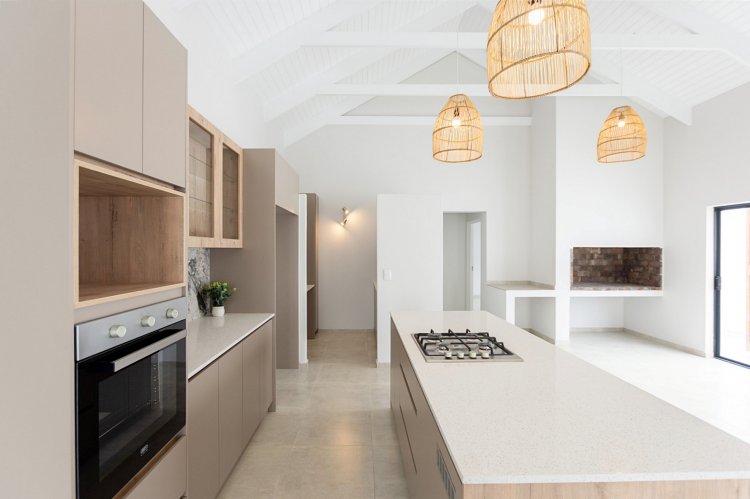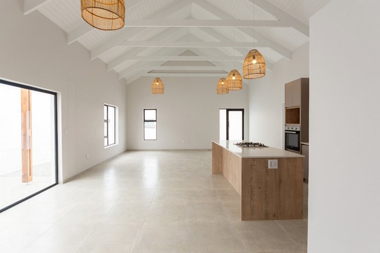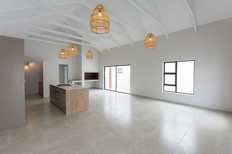 The spacious open-plan kitchen/dining/living and braai area is bathed in natural light, creating a bright and airy space that is perfect for both relaxation and entertaining.