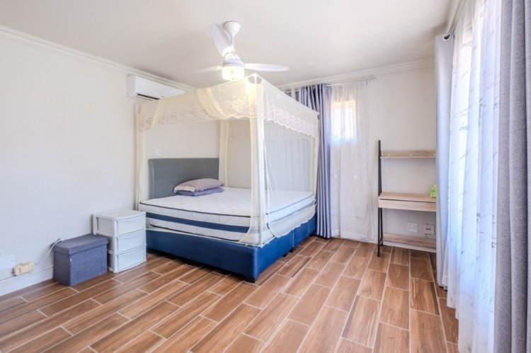 The home offers three generously sized bedrooms, all fitted with built in cupboards and air conditioning. The main bedroom boasts a walk in closet and a luxurious en-suite bathroom complete with a double basin, shower, bath and toilet. The remaining two bedrooms share a well appointed bathroom with double basin, shower and toilet. Two of the bedrooms also enjoy access to their own private balconies overlooking the garden and pool area. A versatile fourth room adds further value and can easily be used as an additional bedroom, home office, study or bar area, with direct access to the entertainment space.