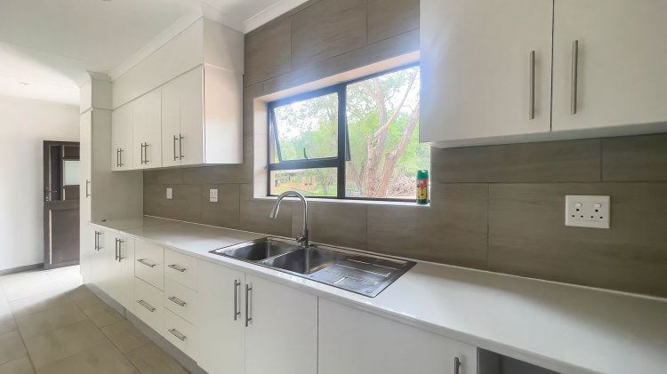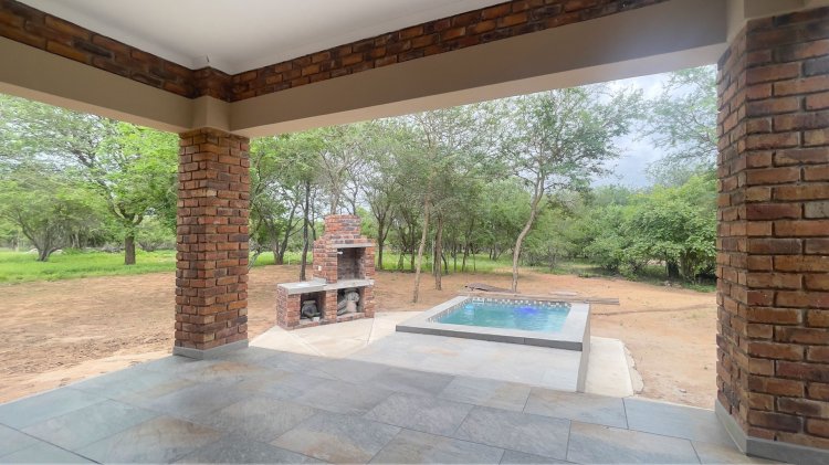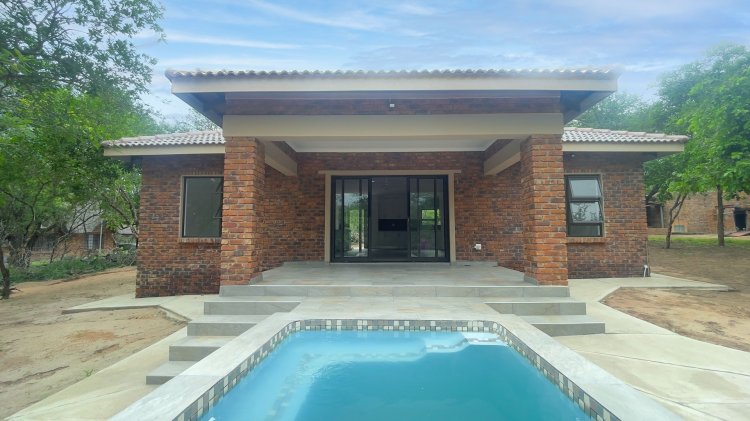 Modern Bushveld Beauty on Pristine Parkland For Sale EXCLUSIVE MANDATE!! Experience true bushveld luxury in this beautiful, brand-new home in Marloth Park, perfectly positioned on a pristine parkland stand bordering the tranquil Lionspruit. Designed for those seeking an authentic nature escape far from the busy commercial areas, this modern residence offers serenity and the soothing sounds of the wild.