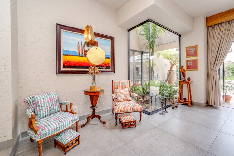 Superbly tiled throughout with well placed skylights and glassed atriums that allow sunlight to flood through the interiors, this home has delightful character and charm !