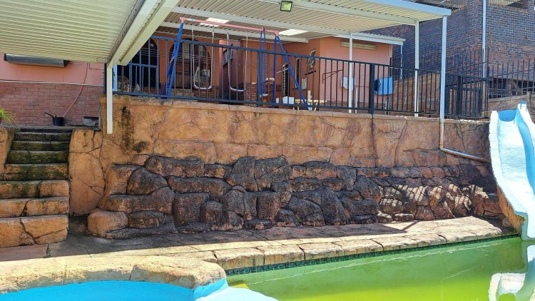 Double garage with automated doors and double carport for safe parking. Enclosed areas for get togethers, and swimming pool with a Shute adjacent to the entertainment area. Suitable for the extended family, with scholars, or home Office needs. Consult me for a personal viewing.