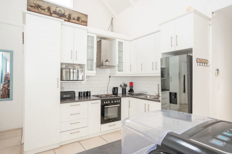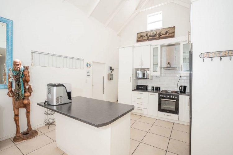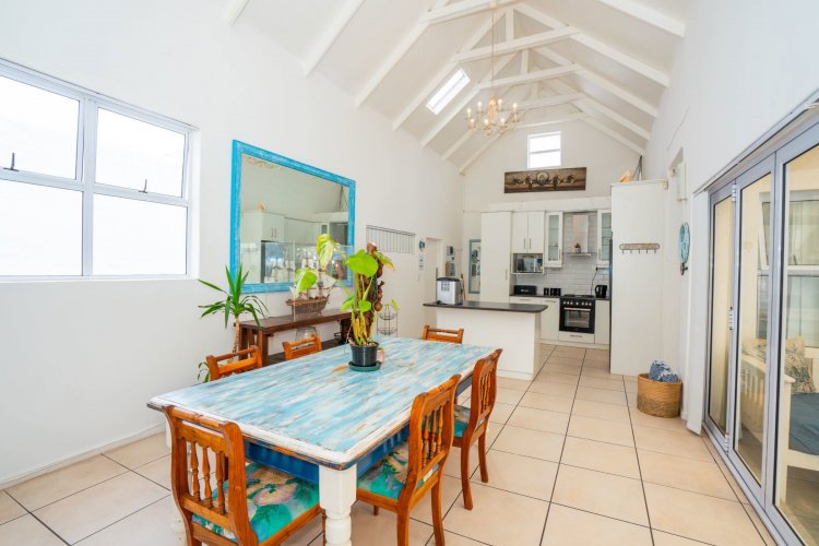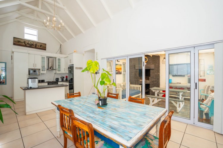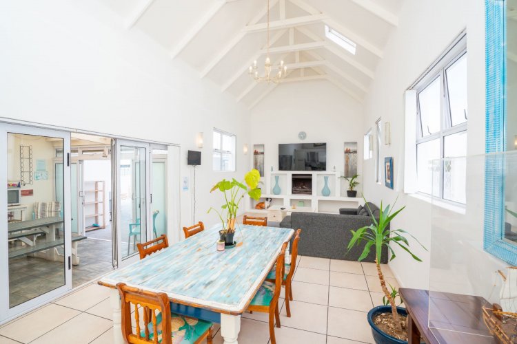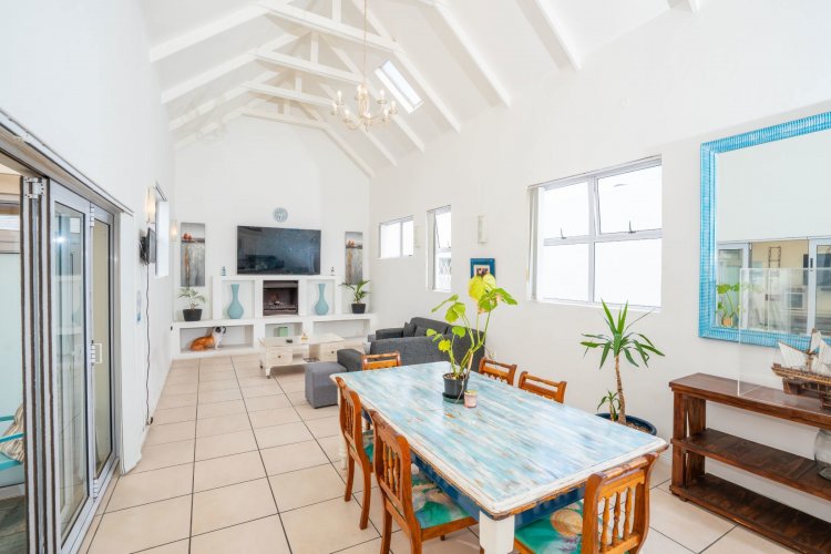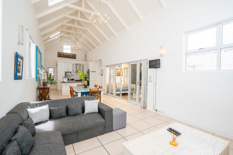 Designed for effortless living and entertaining, the open-plan interior includes a spacious lounge, indoor braai area, and a fully equipped kitchen flowing seamlessly into the main living space. Natural light enhances the home's relaxed West Coast character.