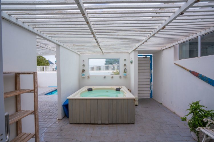 Outdoors, the property boasts a private swimming pool and jacuzzi, creating an ideal setting for entertaining or personal relaxation.