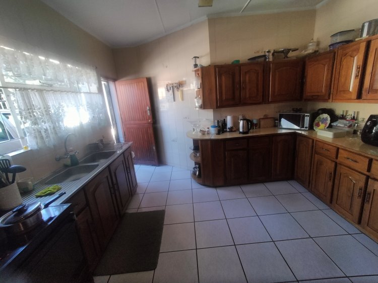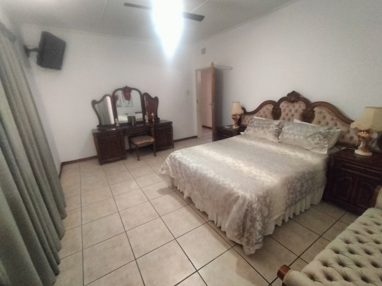 This immaculately maintained 3-bedroom, 2-bathroom home offers generous living spaces including a formal lounge, dining room, and a well-appointed kitchen, complemented by an enclosed patio perfect for relaxing or entertaining. A single garage with a drive-through leads to a large 4-car carport, while additional features like a separate laundry, staff quarters with a bathroom, and a second paved entrance enhance practicality. With its neat finishes and excellent upkeep, this property stands out in both appearance and potential.