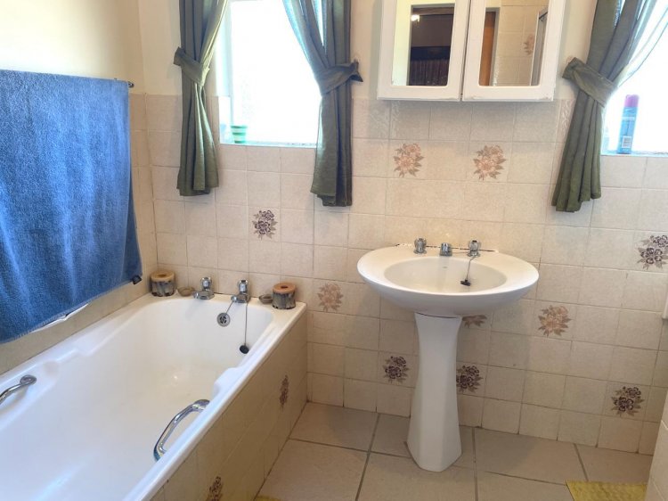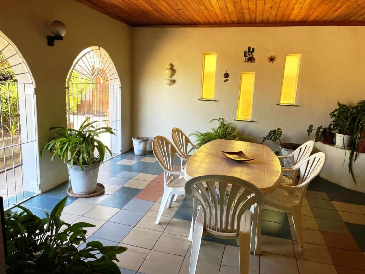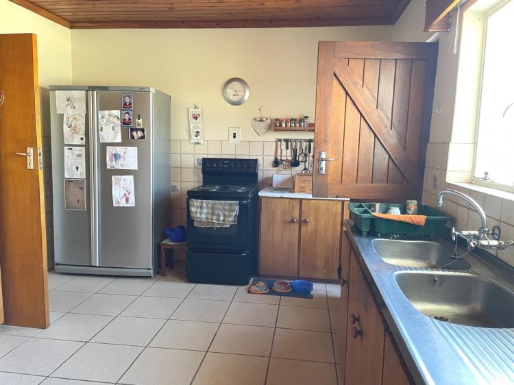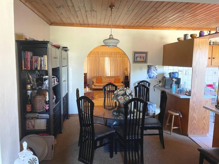 Attractively priced for a quick sale! If you're looking for a spacious backyard, this home is ideal for you! There is plenty of room to subdivide the property or even build a second dwelling. The existing house is exceptionally well-maintained and features solid construction, with a generous open-plan design that includes a large lounge, dining area, and ample kitchen space. You'll also appreciate the excellent borehole and some irrigation options. The home includes two full bathrooms, each equipped with enclosed showers. The expansive backyard offers breathtaking mountain views, and the house is filled with built-in storage solutions. A charming veranda is accessible from the TV lounge, and the laundry room, conveniently located off the hallway, leads to a rear entrance that opens to the backyard.