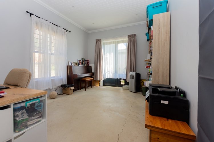 The outdoor spaces are designed for easy living and minimal upkeep. Enjoy sunset views from the patio with its built-in braai, or complete the partially finished swimming pool to create your own private oasis. The neat, low-maintenance garden and fully fenced perimeter provide both beauty and security.
