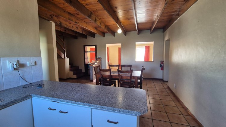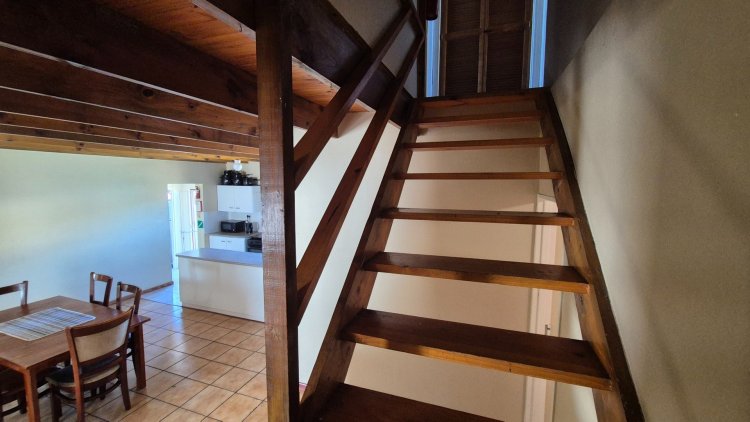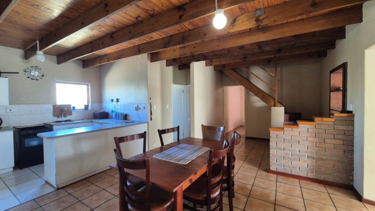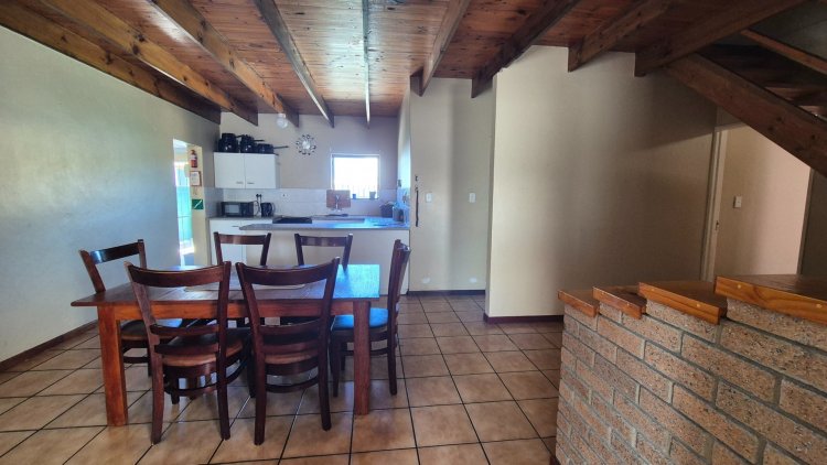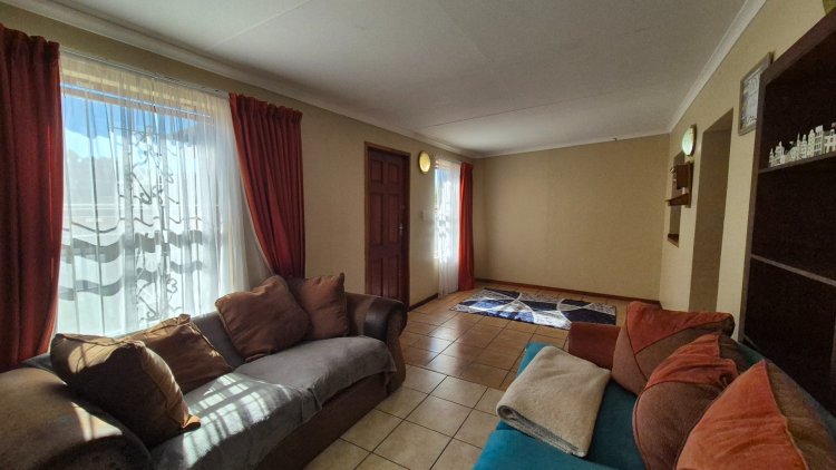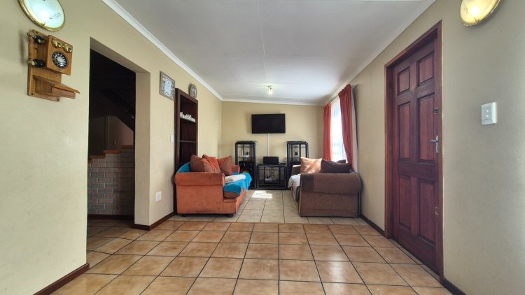 The home features an open-plan living area with a well-equipped kitchen, pantry, and ample cupboard space. Three bedrooms are located on the ground floor, with a versatile loft upstairs — perfect as extra bedrooms or a hobby space.